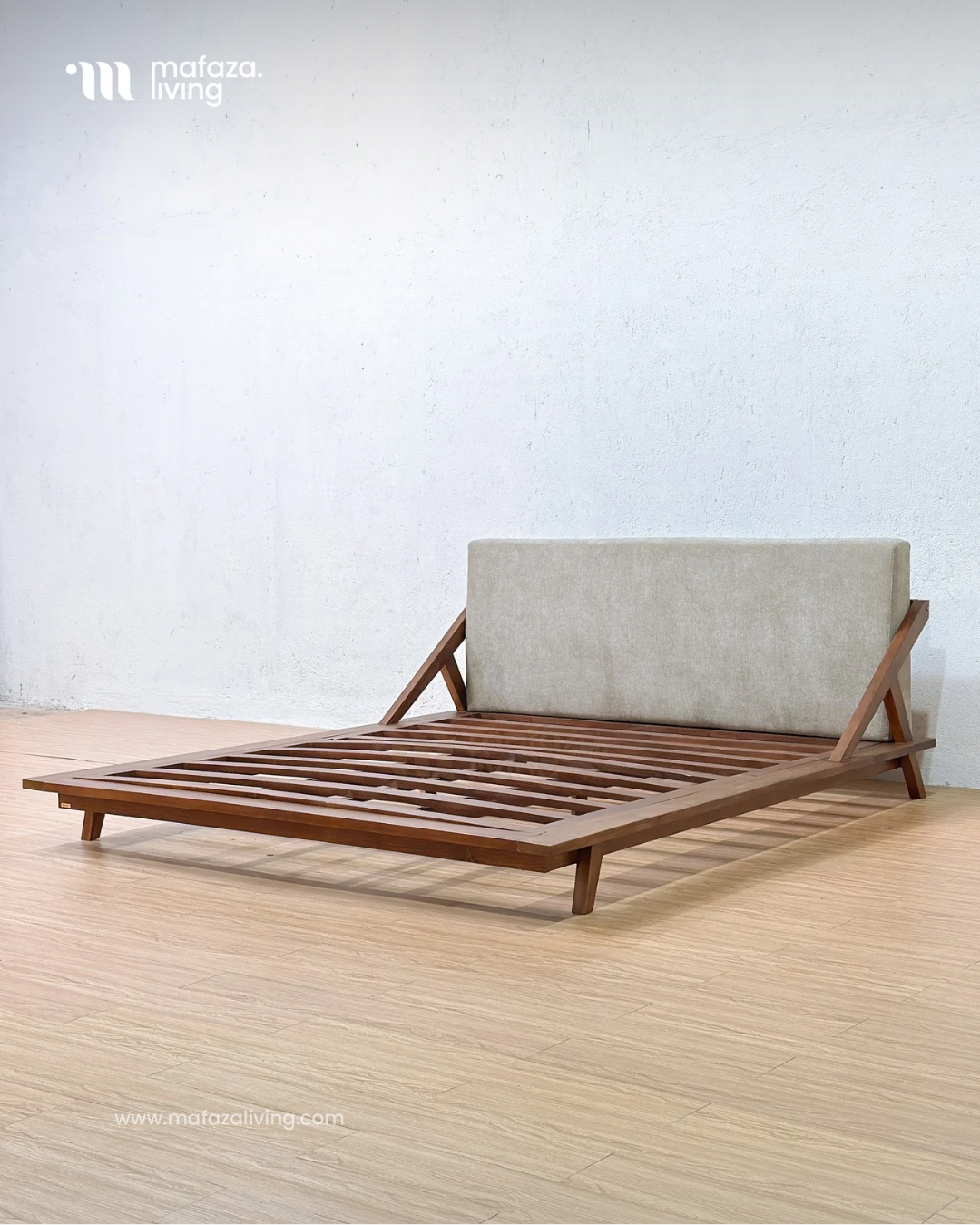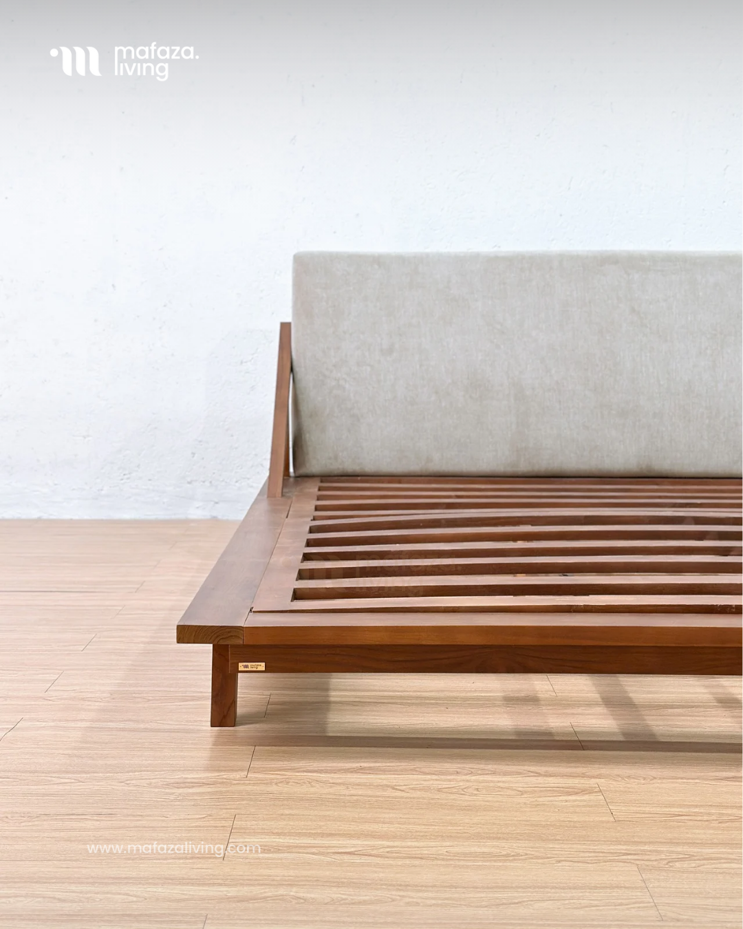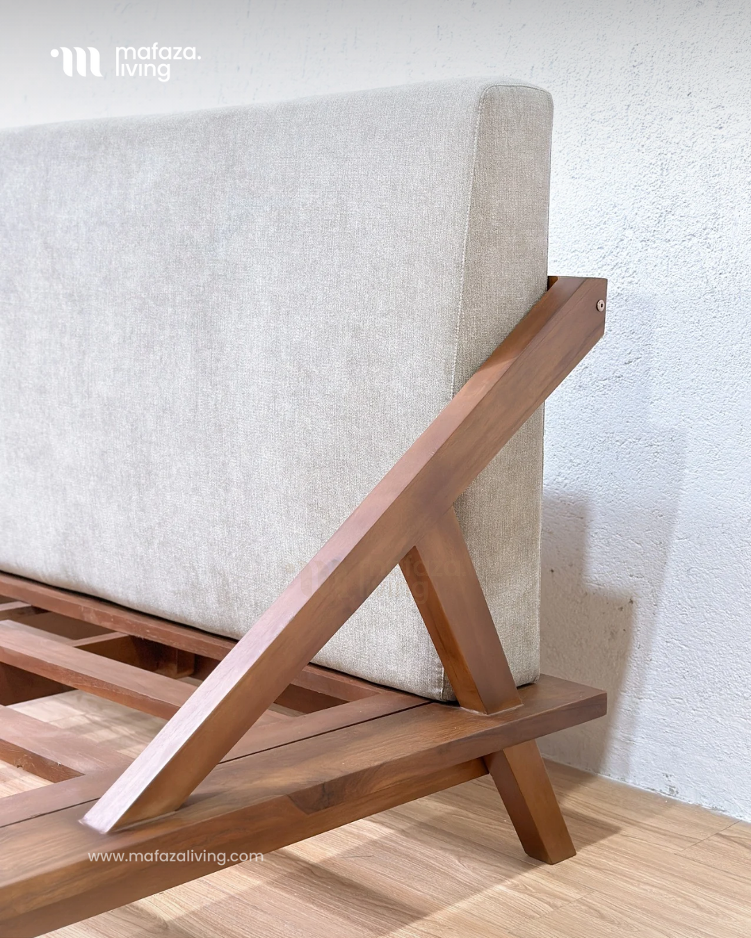 Drommen Teak Wood Bed Frame with Upholstered Headboard 180x200
