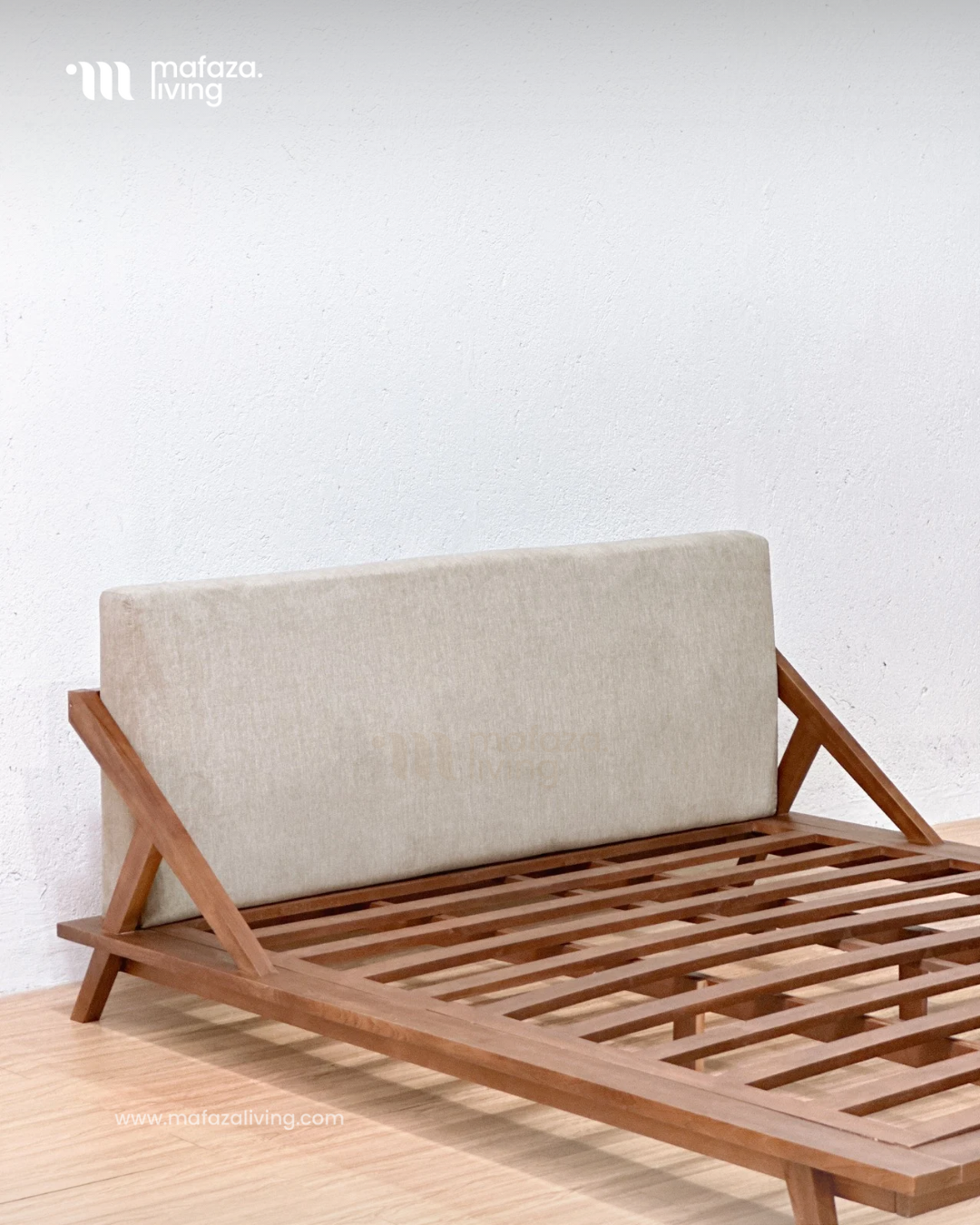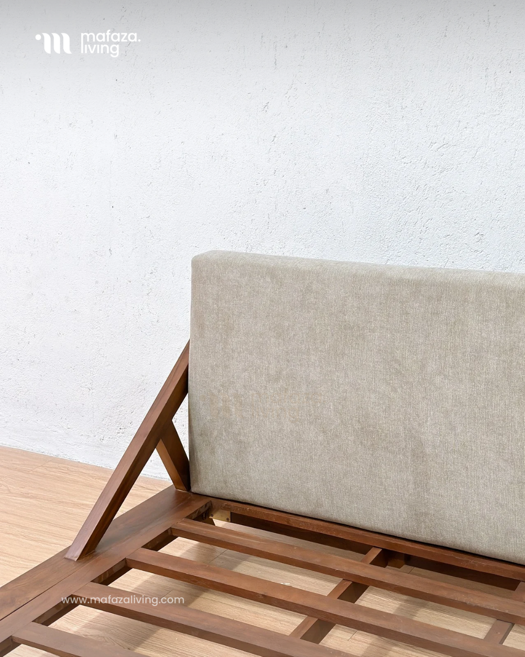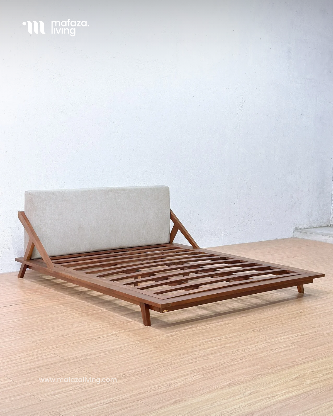 Drommen Teak Wood Bed Frame with Upholstered Headboard 180x200