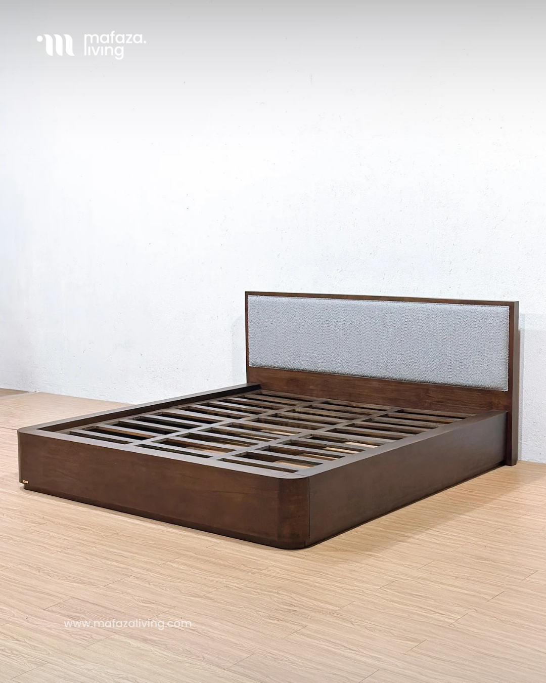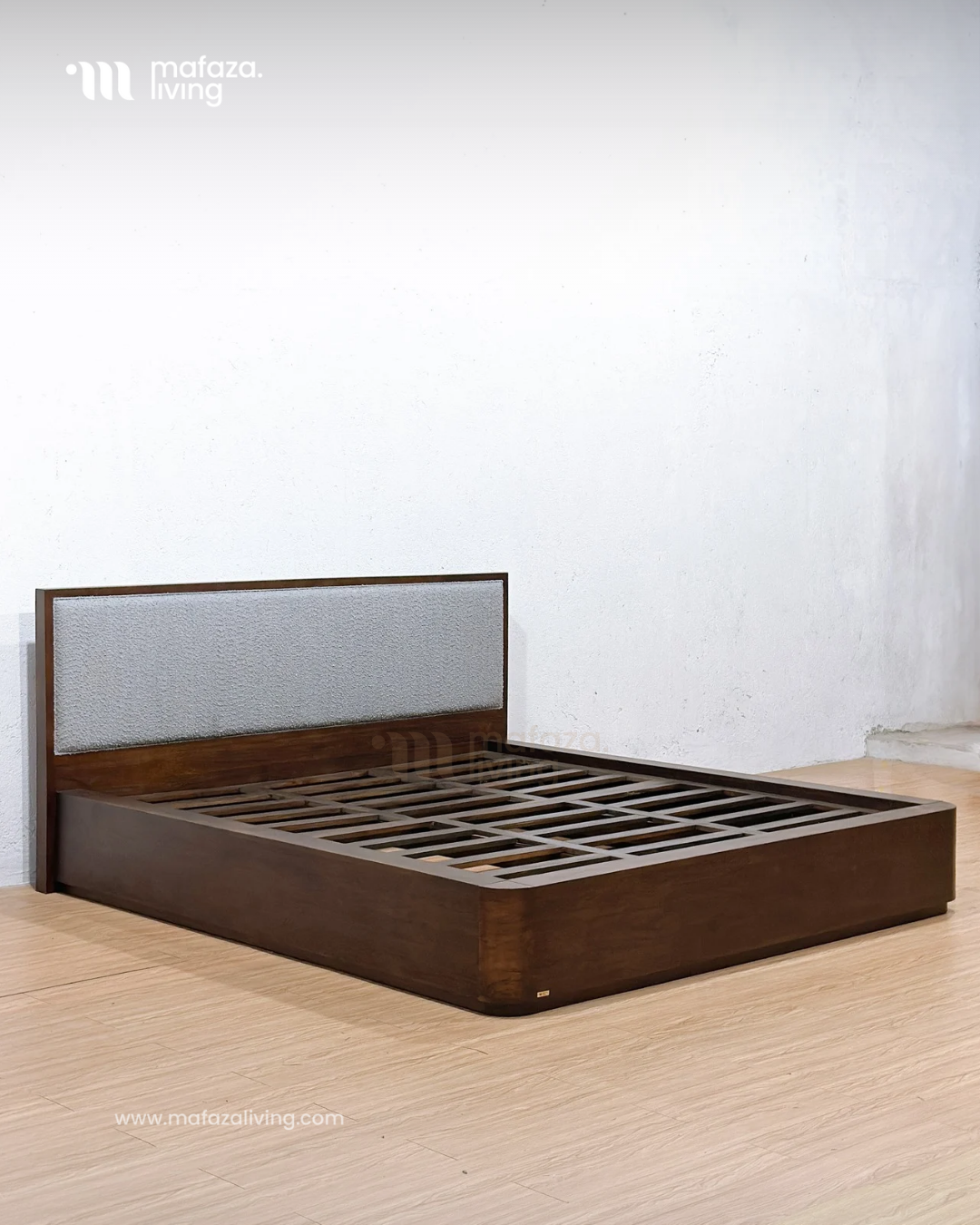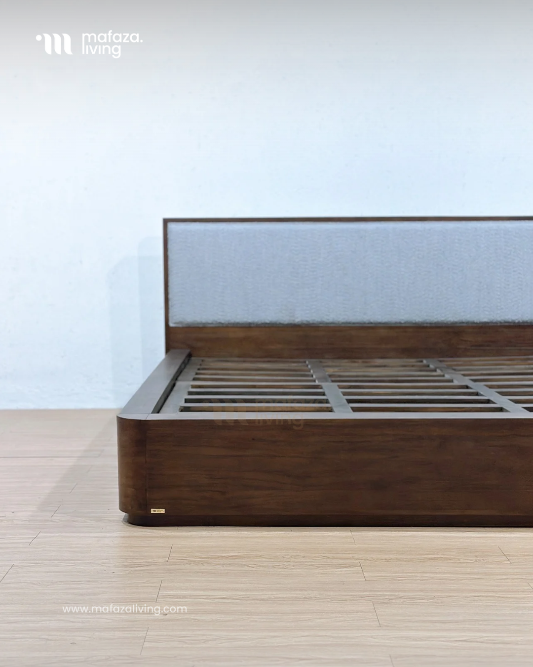Milano Teak Wood Upholstered Bed Frame 180x200