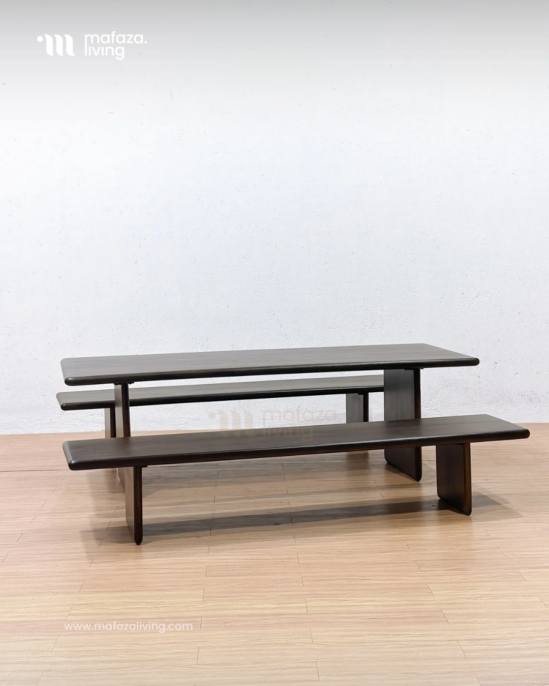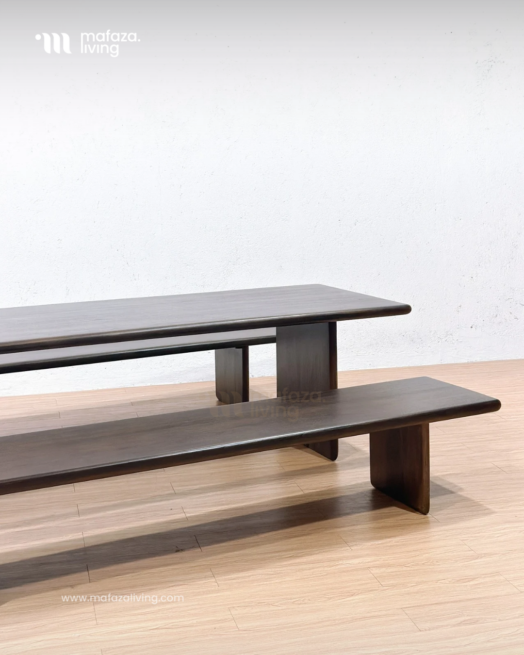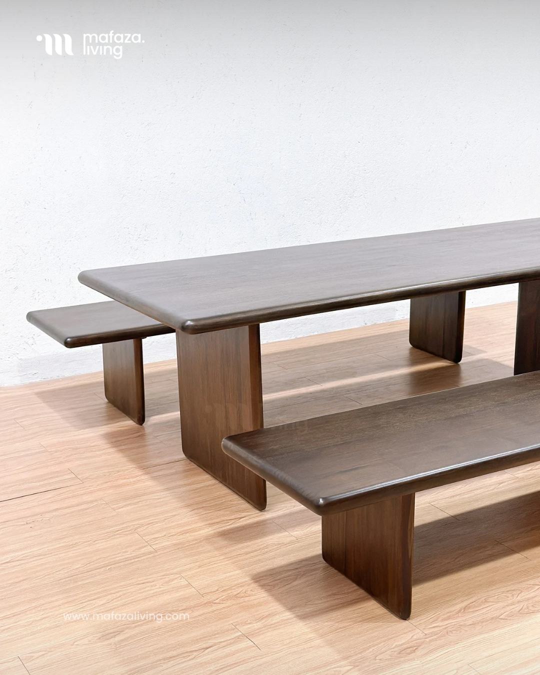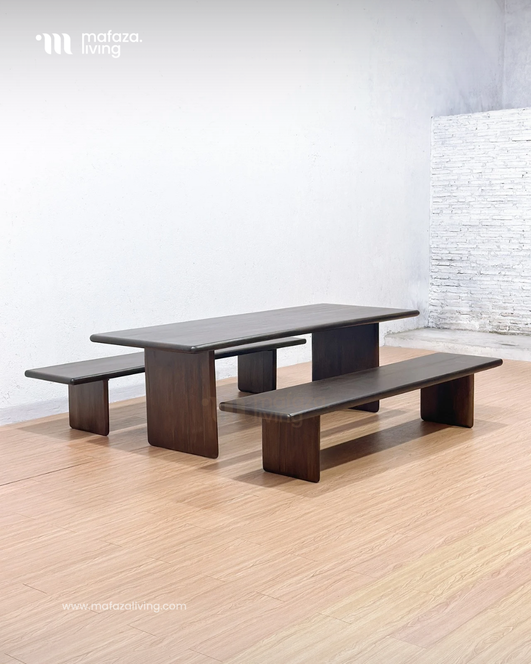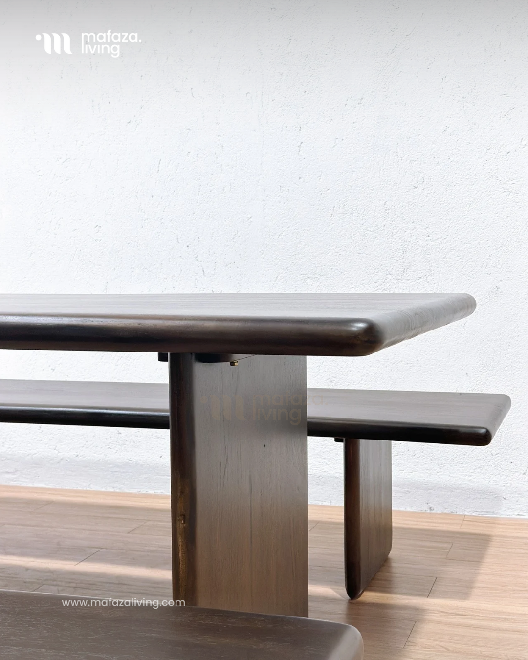 Crafted from certified teak wood, the Mount Dining Set embodies strength, elegance, and timeless simplicity. Its bold silhouette and clean lines bring a modern yet grounded presence to any dining space, while the spacious benches invite gatherings that feel warm and effortless. Designed to withstand daily use while preserving its refined aesthetic, Mount becomes more than just a dining set, it is a stage for shared meals, laughter, and meaningful moments. With durability rooted in craftsmanship and style shaped by minimalism, this set transforms every meal into an experience of connection.