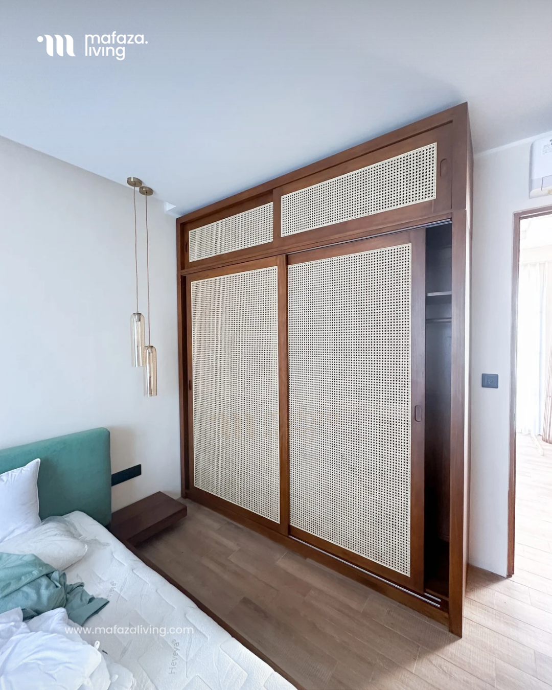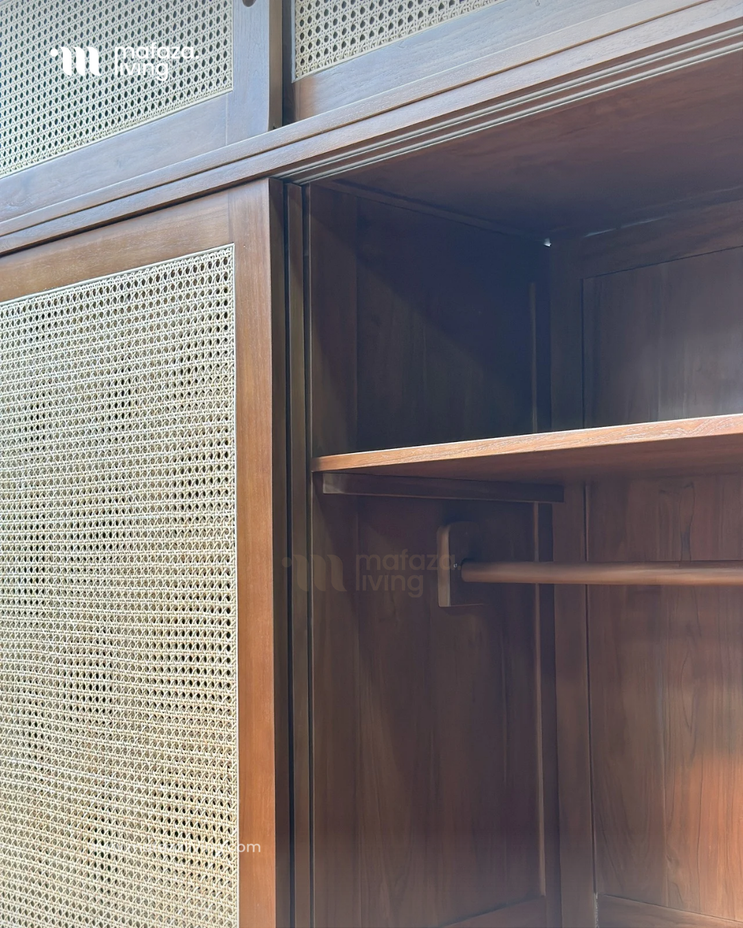 [MM] Nova Teak Wood Wardrobe with Sliding Rattan Doors