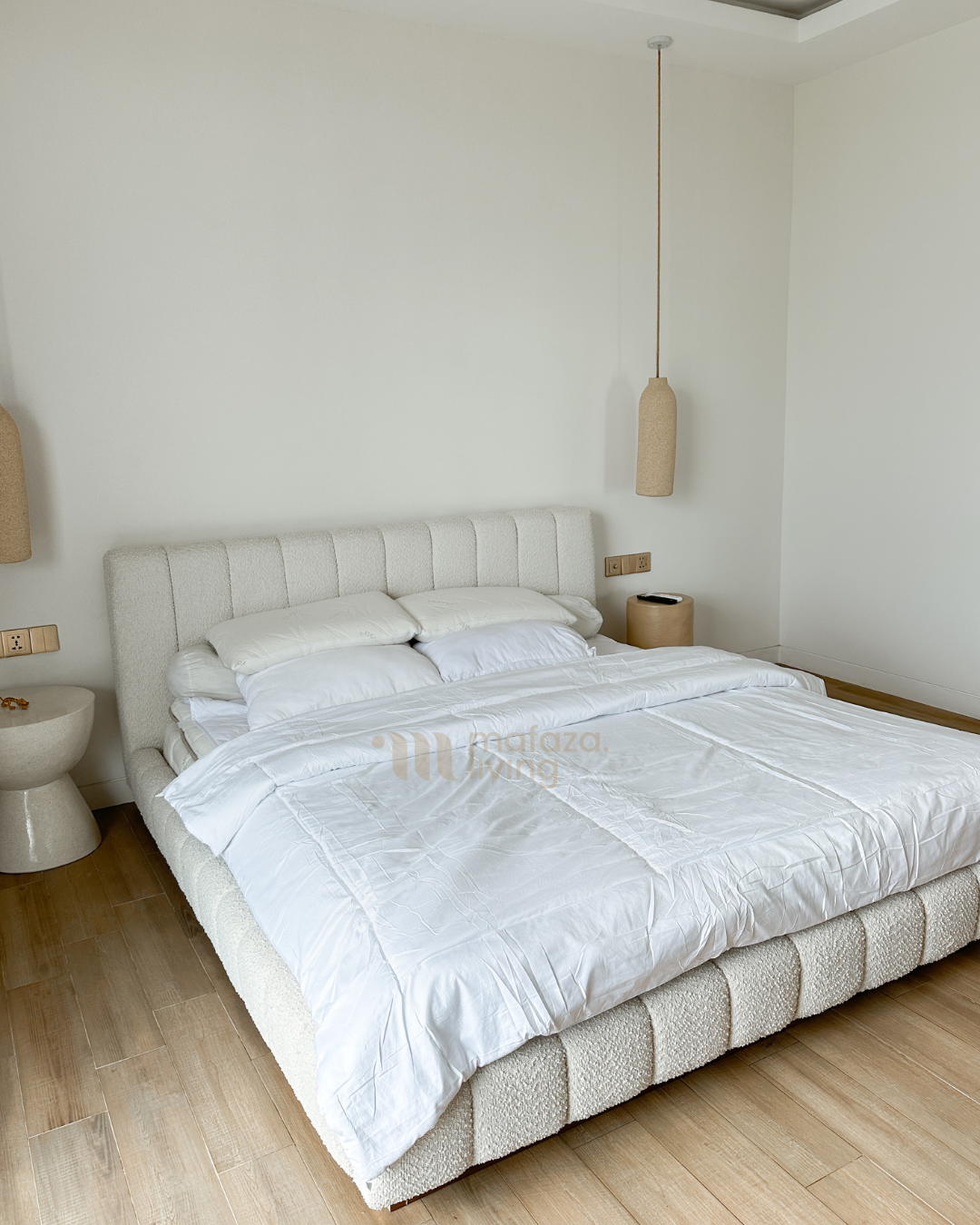 Redefining modern elegance, the Thompson Vertical-Stitch Bed Frame brings timeless design into the heart of your bedroom. Crafted from certified teak wood, its solid foundation ensures strength and durability that lasts for years. Inspired by the original Thompson design, this version introduces a refined twist with vertical-only stitching across all sides, creating a sleek, elongated look that feels both contemporary and luxurious. Wrapped in plush upholstery, the bed frame offers inviting comfort, while its minimalist yet bold silhouette transforms any room into a statement of sophistication and enduring style.