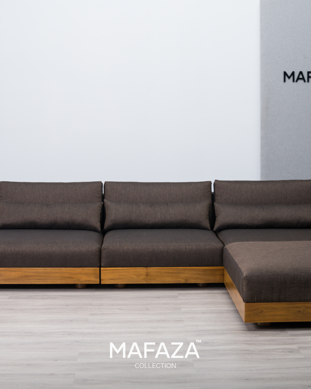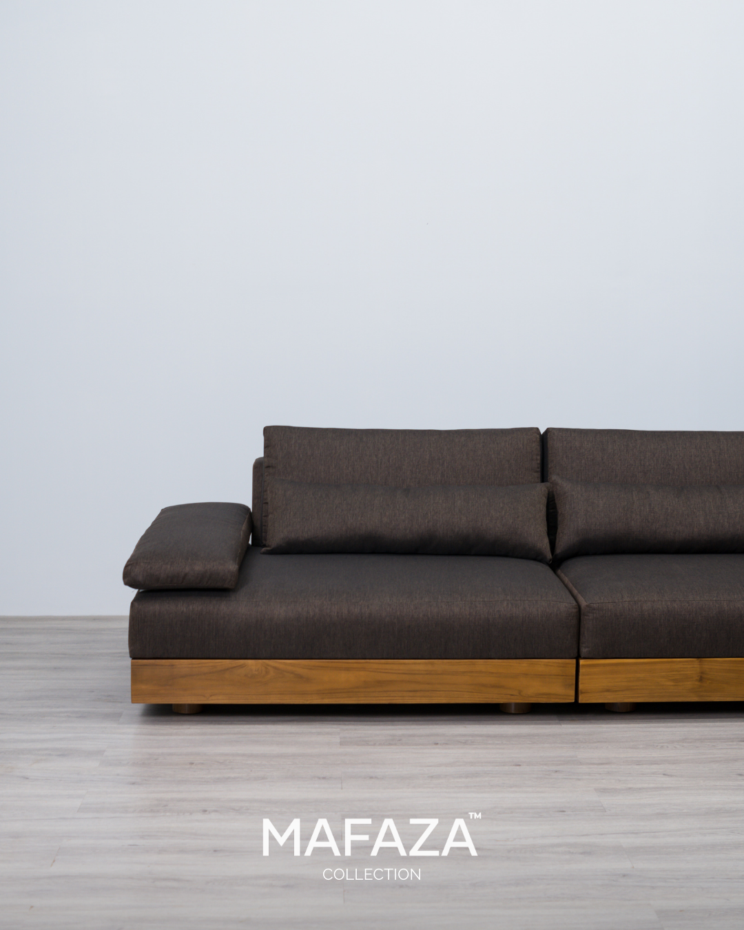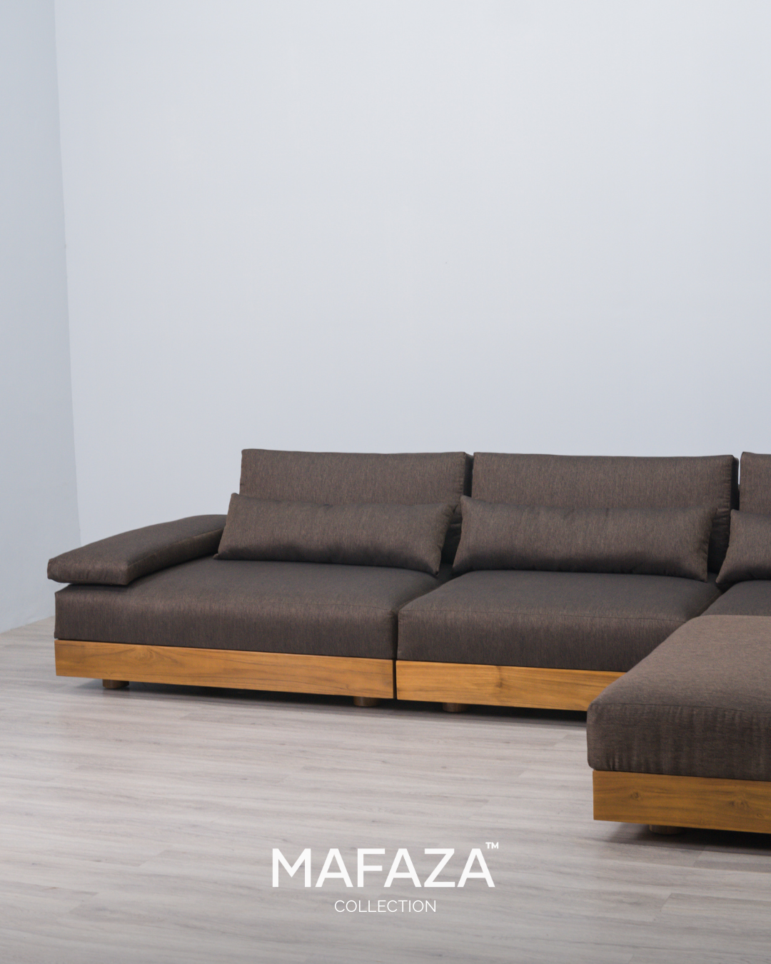 Truro L-Shaped Modular Sofa – Natural Teak Wood & Scandinavian Visby Fabric