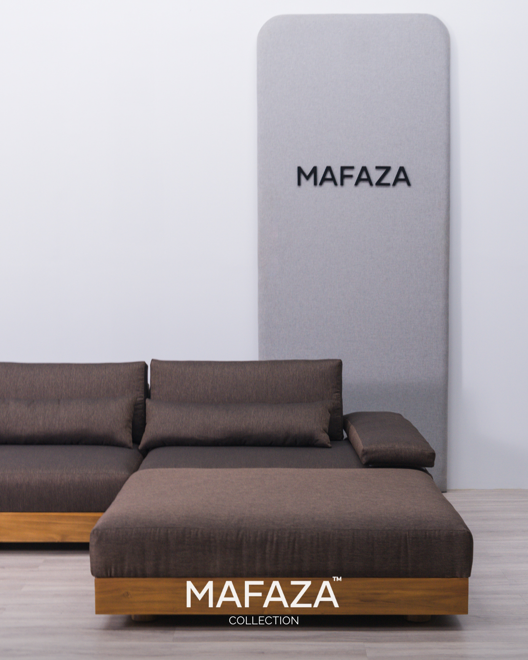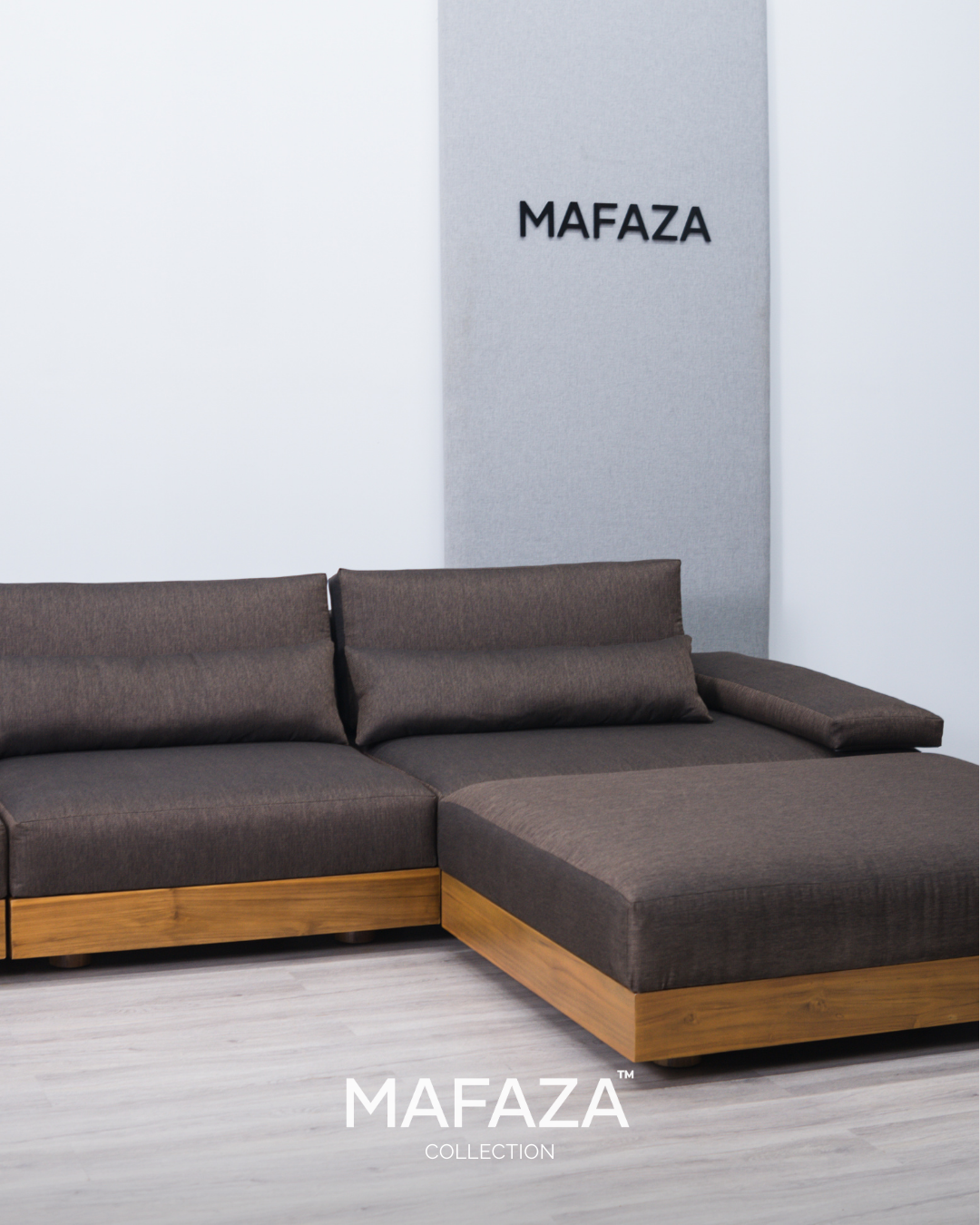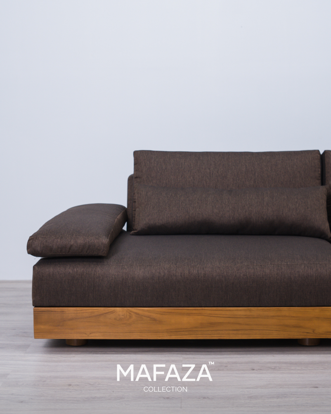 Truro L-Shaped Modular Sofa – Natural Teak Wood & Scandinavian Visby Fabric