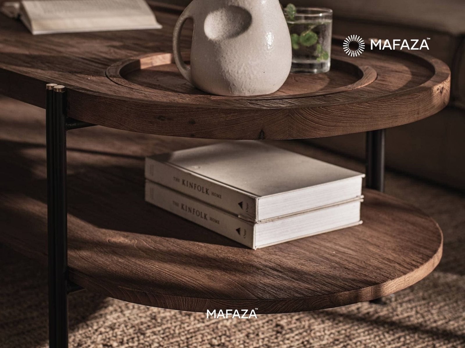 The Coco Coffee Table with Tray has a contemporary yet useful charm thanks to its metal elements and certified teak wood. Serving and decorating are made simple by the detachable tray, which adds functionality and combines ordinary luxury with smart design.