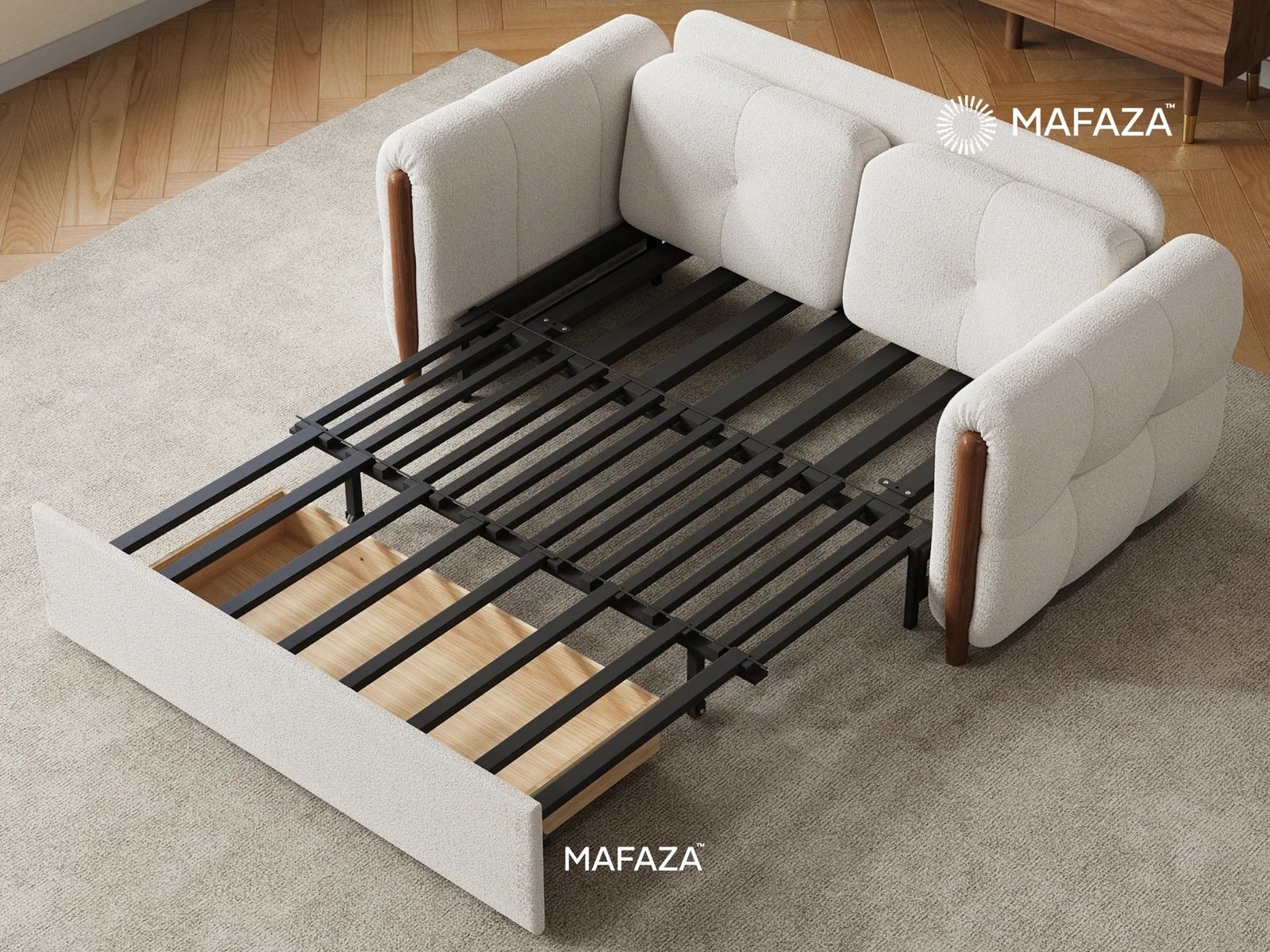 Make your guest room a multipurpose haven. Constructed from genuine Certified Teak Wood, this multipurpose masterpiece ensures a stable structure that effortlessly shifts from a stylish seating area to a peaceful hideaway. For both daytime relaxation and overnight stays, D26 Royal Foam offers a luxurious, supporting feeling beneath its exquisite upholstery. It's the ideal fusion of organic warmth and space-saving functionality—a refined solution for the contemporary, multipurpose home.