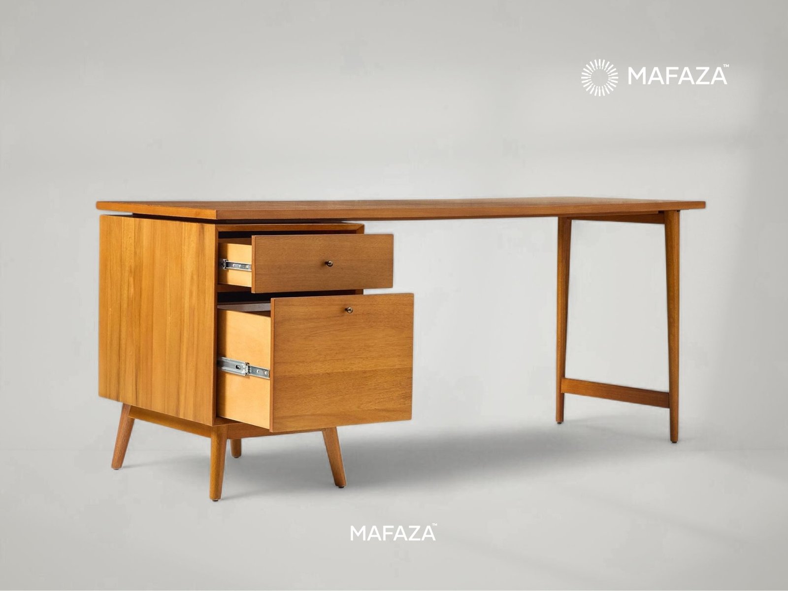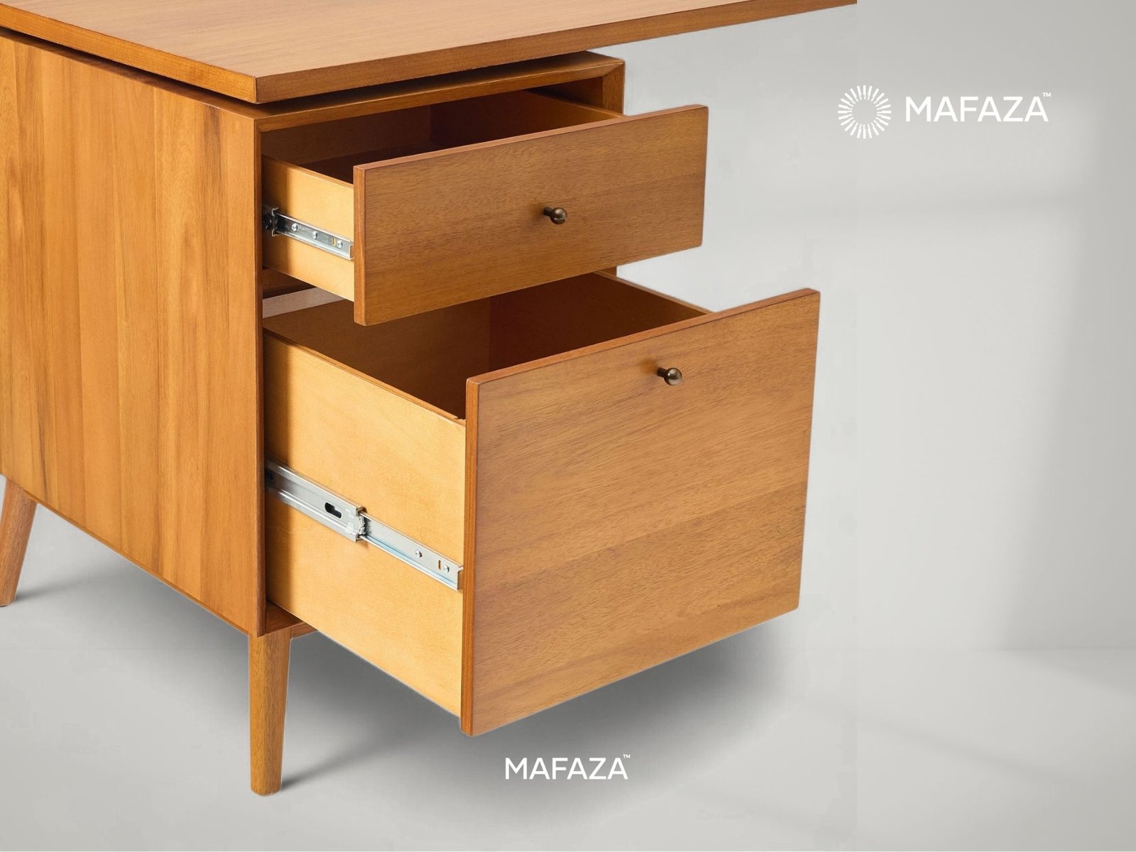 Efficiency in solid teak is defined by the Dallen Modular Desk. It provides comfort and sophistication for workspaces that require both aesthetic presence and functionality thanks to its two useful drawers and simple modular construction.