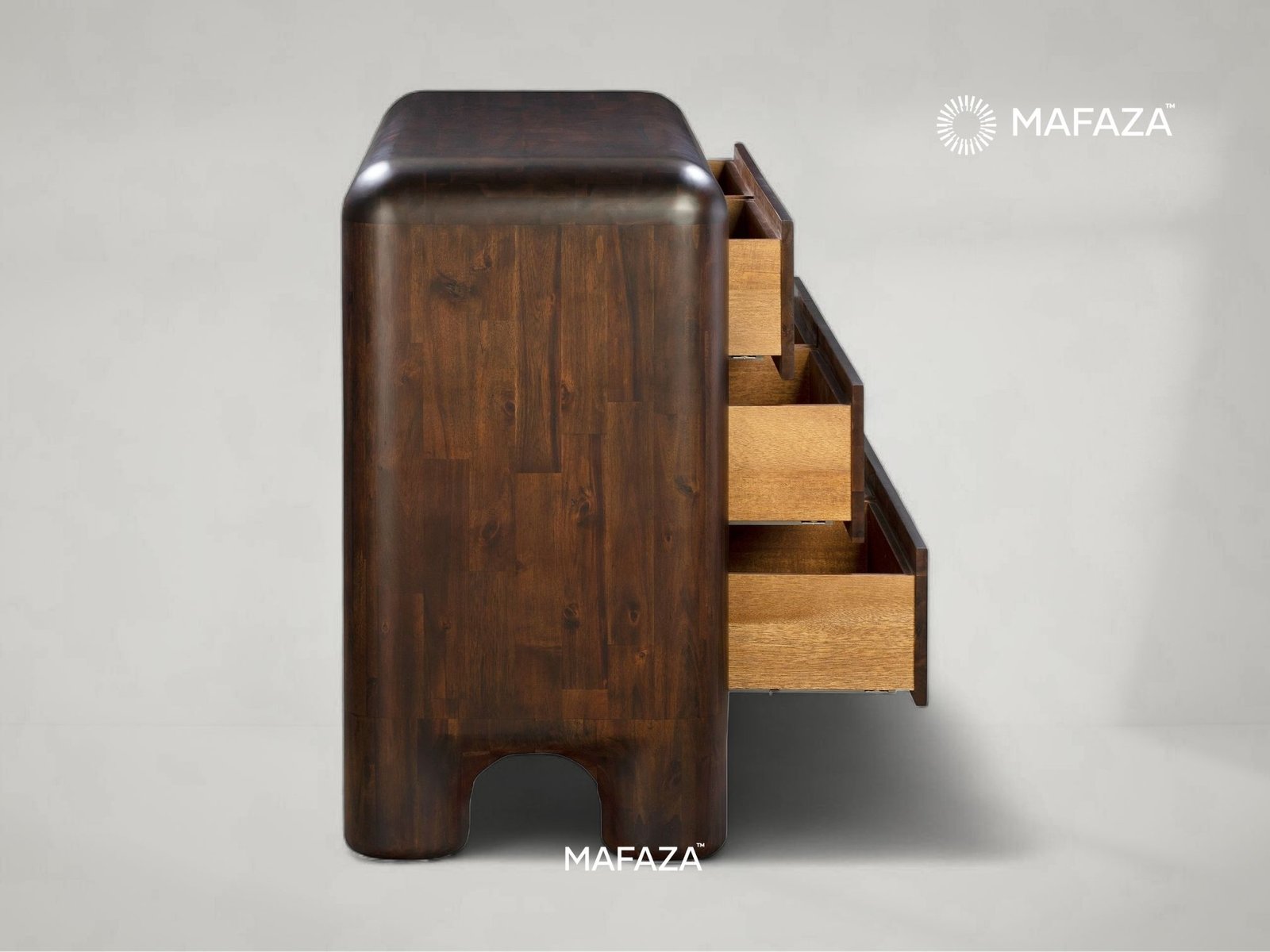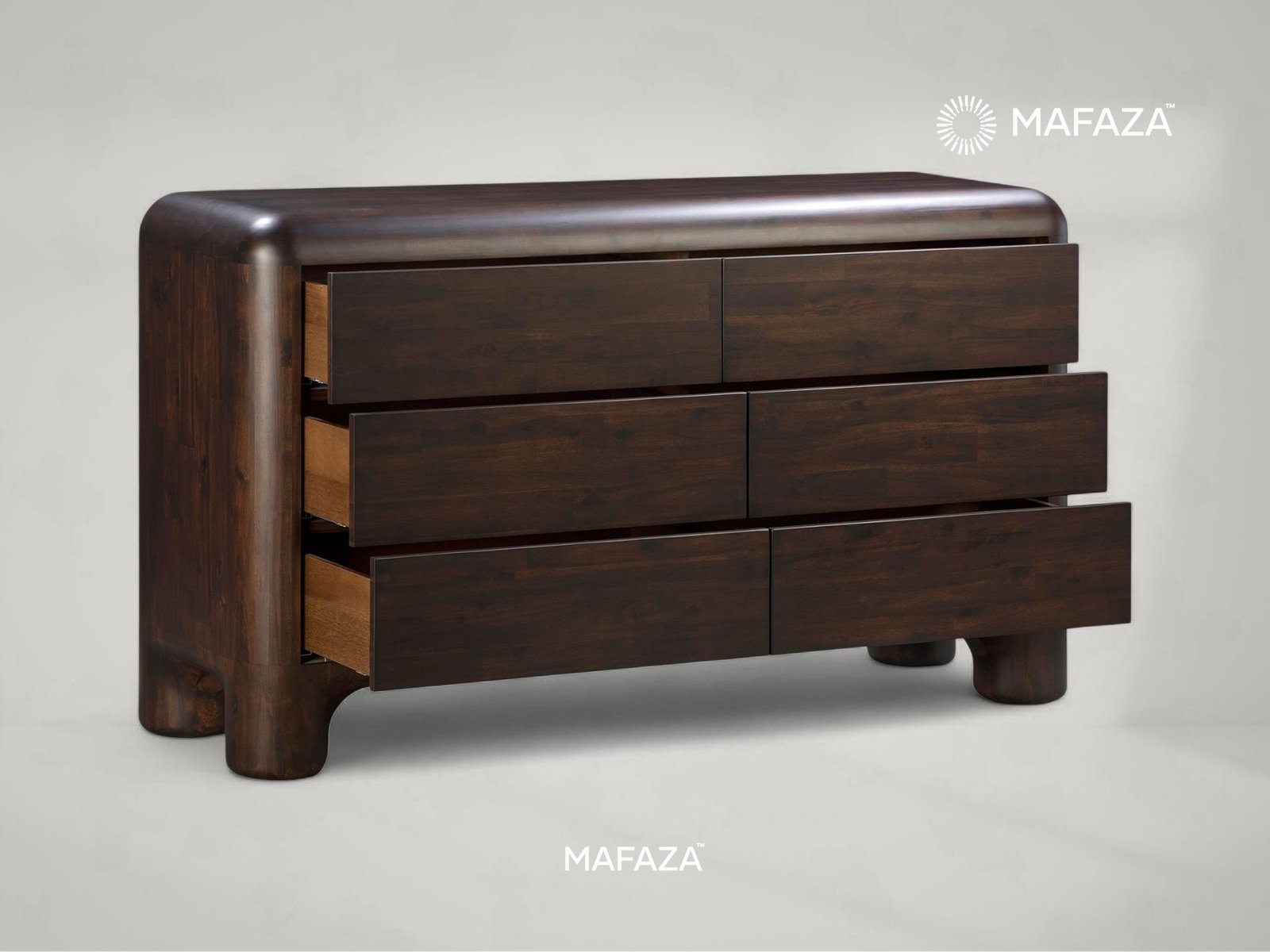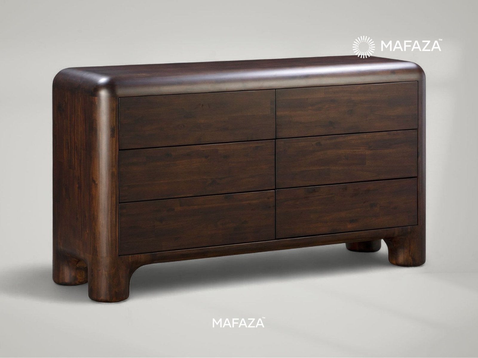 In the warmth of nature, arrange your environment. With six roomy drawers to hold your most treasured possessions, this exquisitely designed dresser adds a sense of tranquility to your daily routine. Its continuous wood grain and rich, golden textures, carved from Certified Teak Wood, transform a useful storage piece into an eye-catching focal point. It's a blend of ample functionality and understated elegance, intended to keep your haven uncluttered and classic.