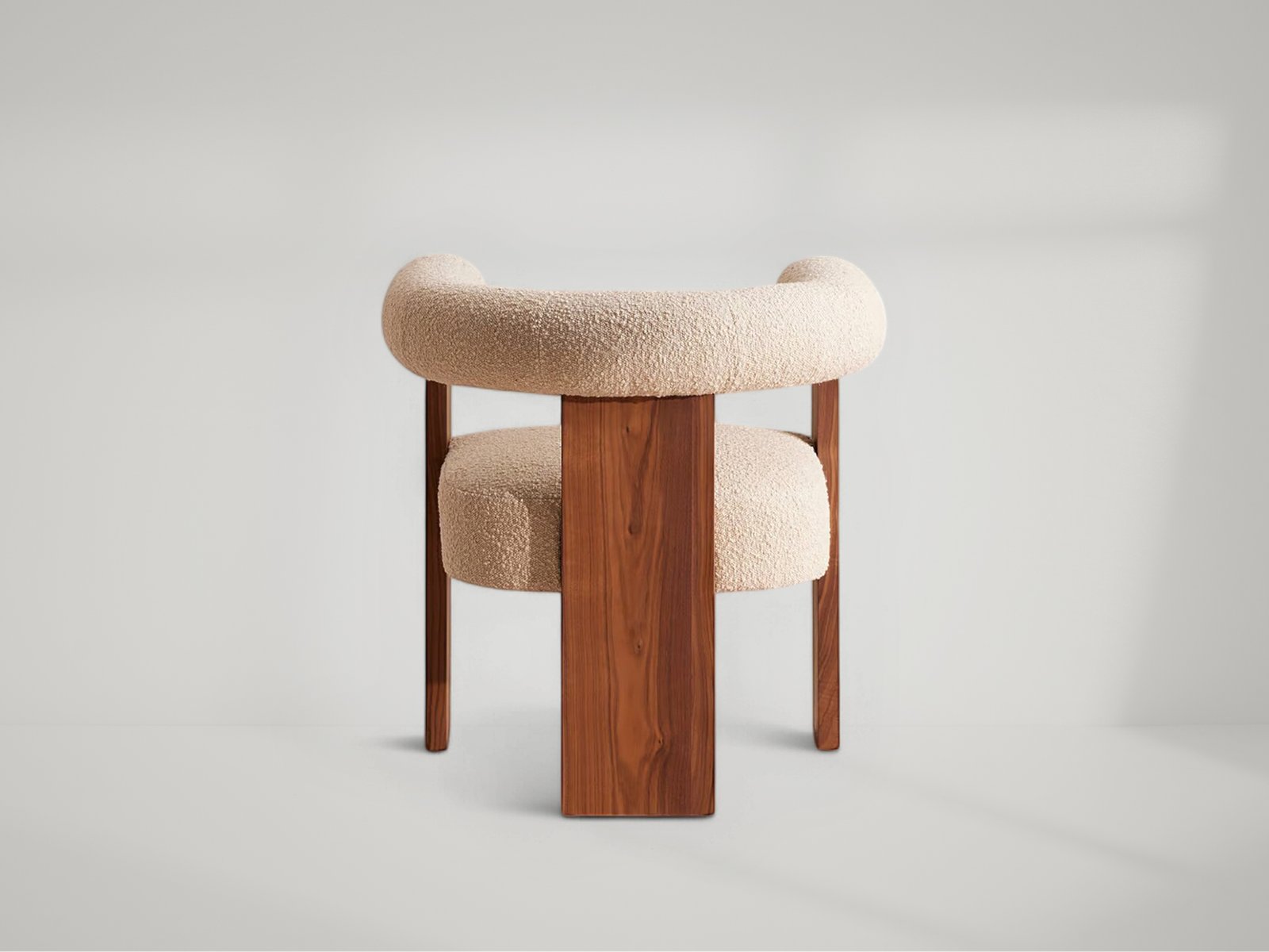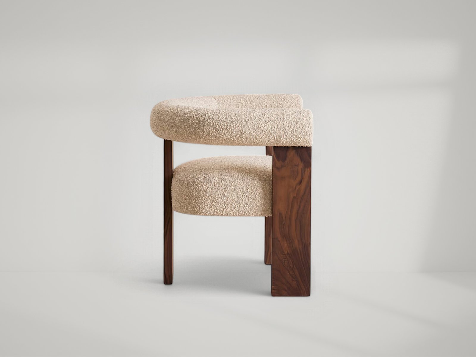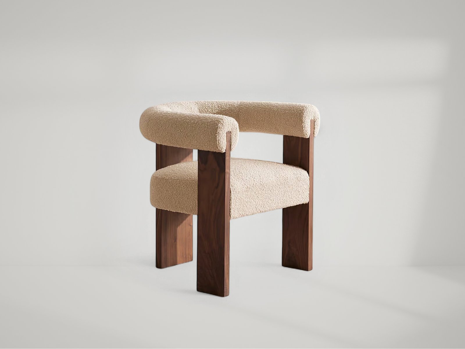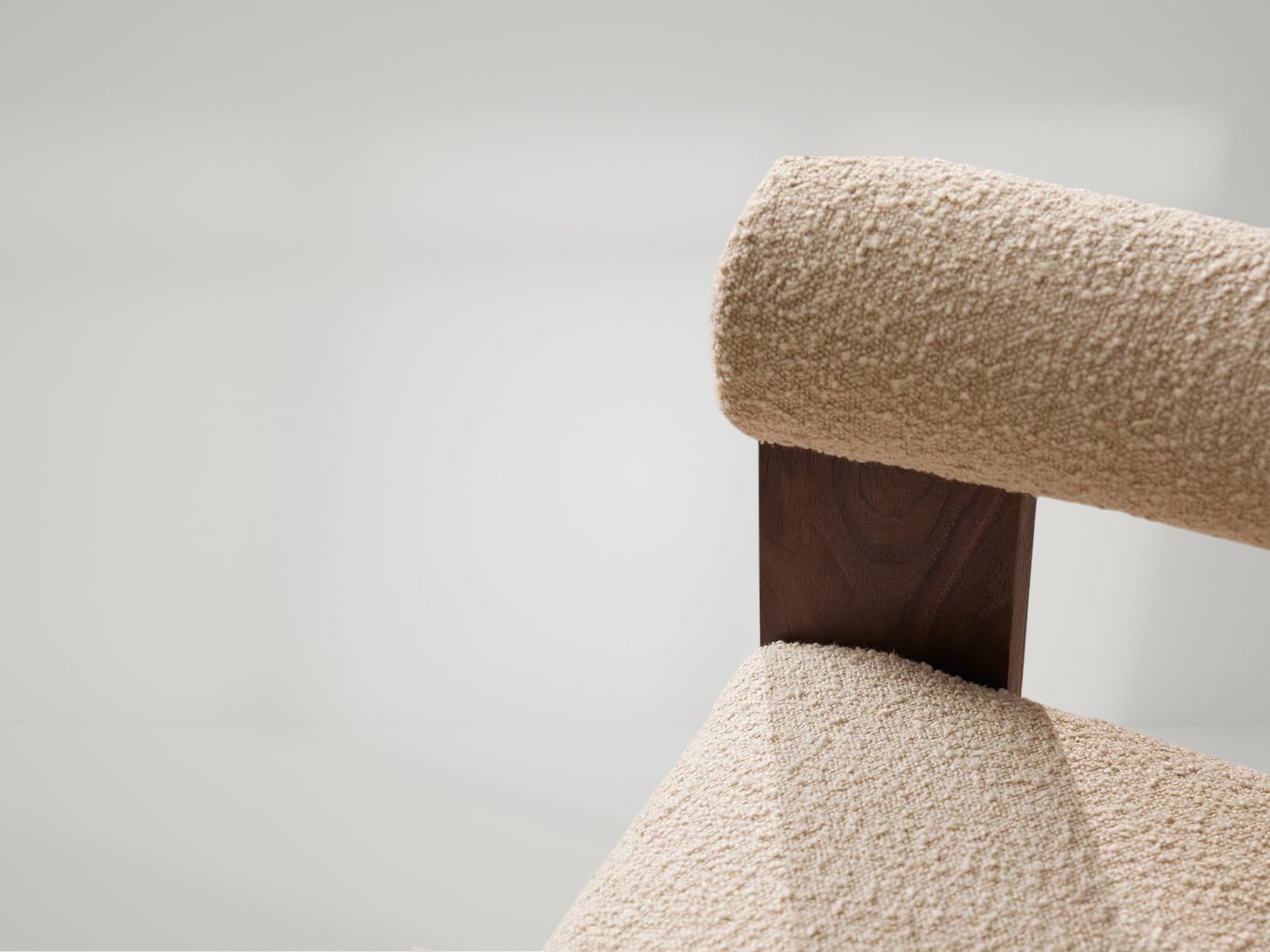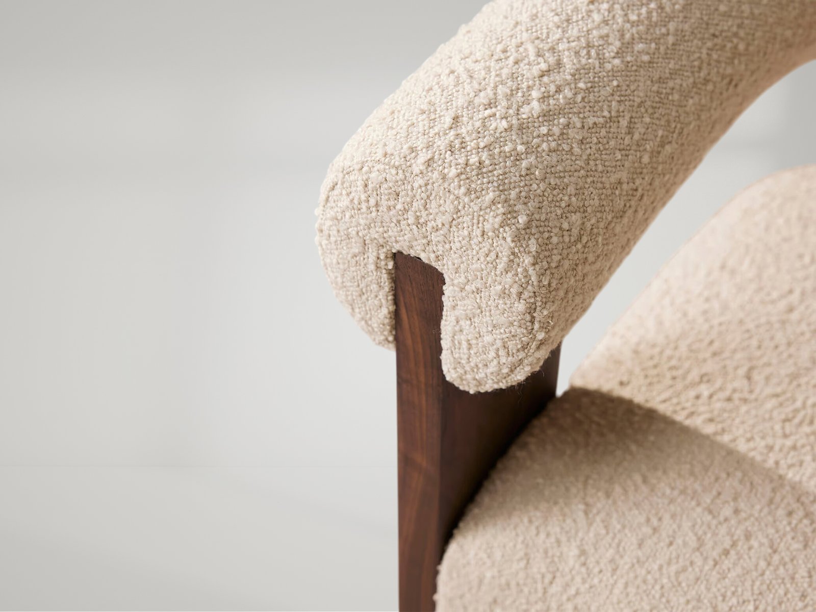 Referencing the vintage shapes at DUMBO House in Brooklyn, our Eldon dining chair is designed for low, relaxed dining. The clean lines of the exposed walnut frame contrast the curves of the tactile boucle. Pair with the Eldon sofa and armchair to bring balance and harmony into your space.