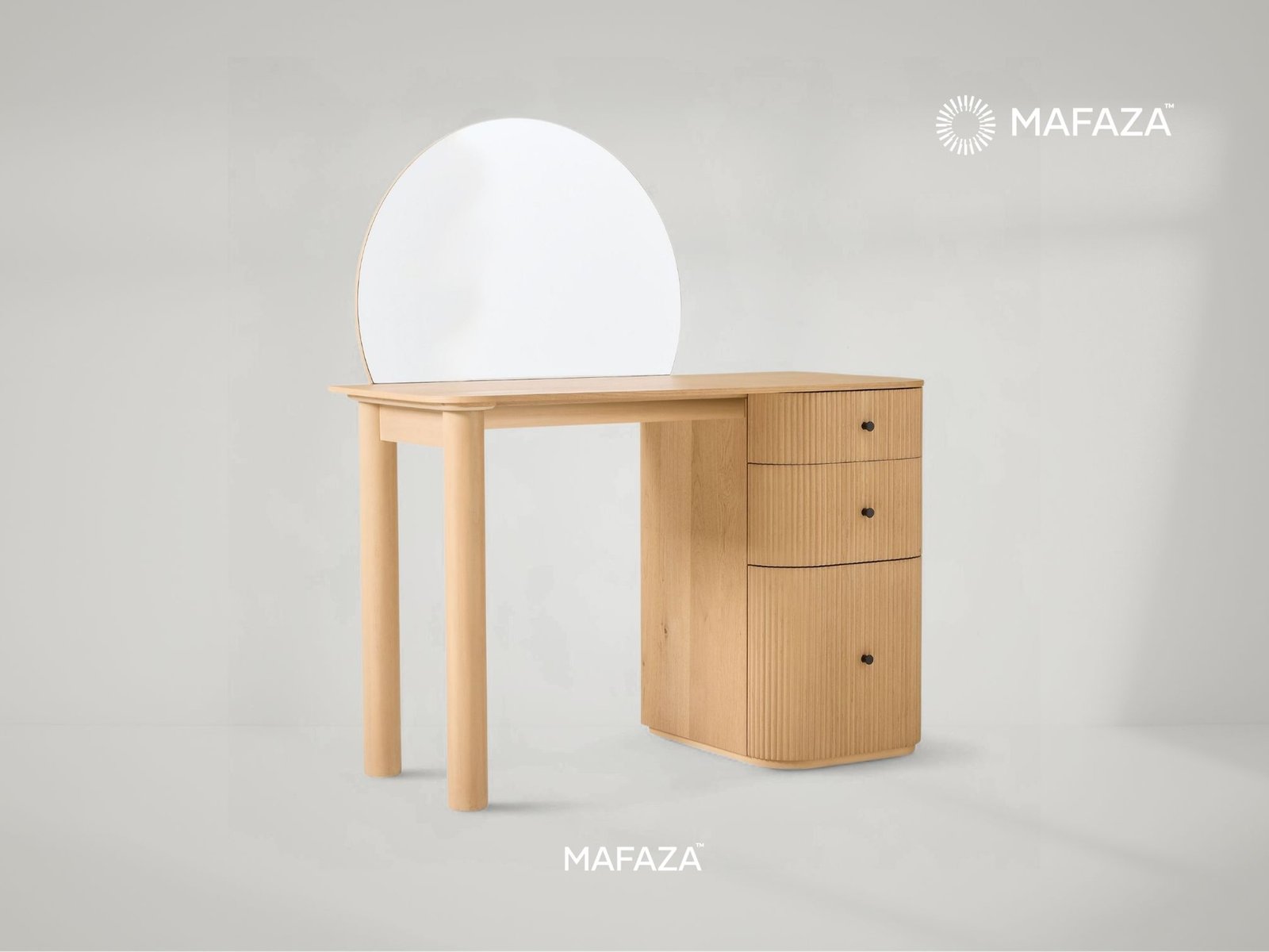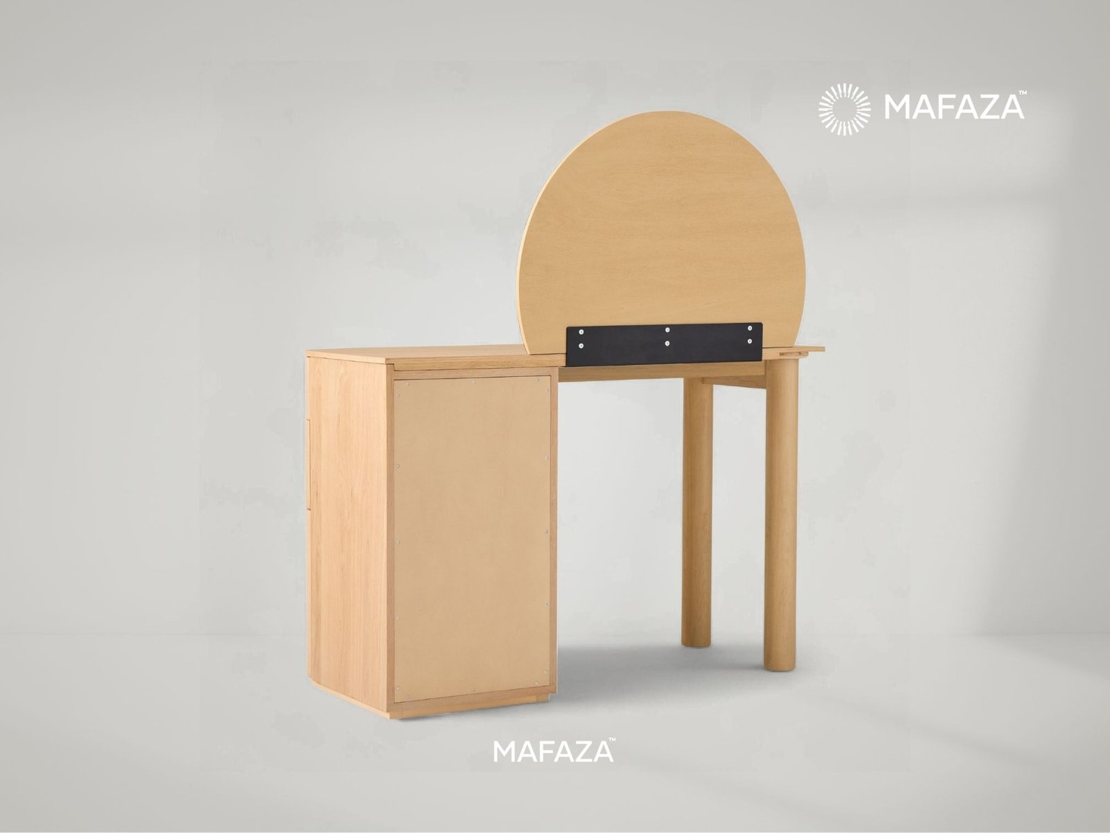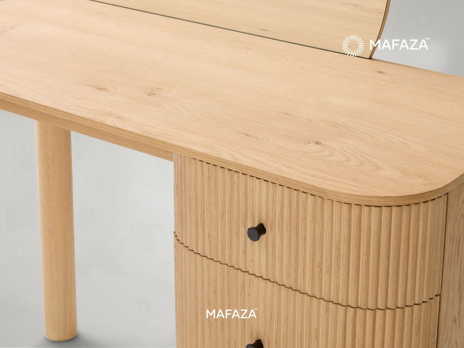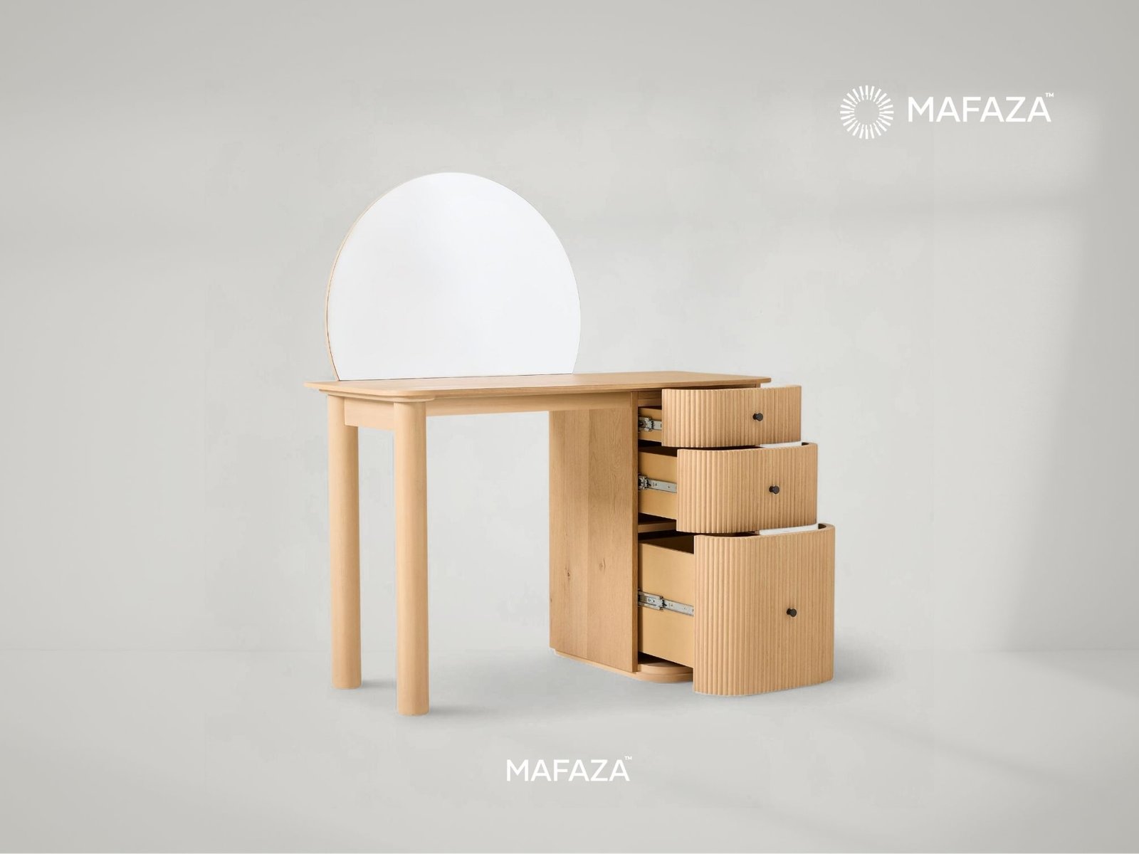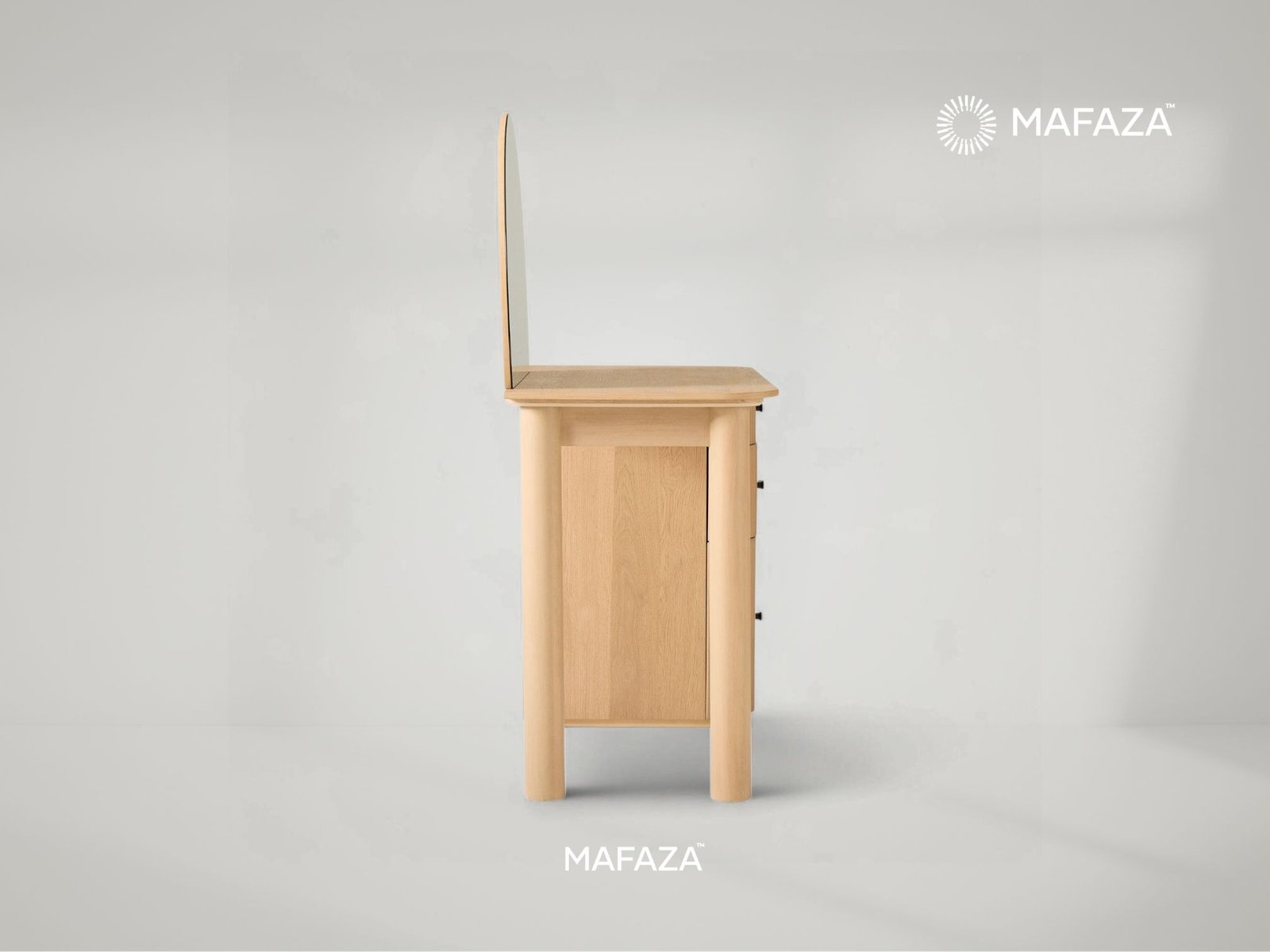 The Ellington Dressing Table embodies modern luxury with its elegance and grace. It is made by hand from certified teak wood and has three drawers (big, medium, and small) to keep your necessities in order. Ellington creates a serene and beautiful haven in every space with his flawless balance of softness and rigidity.