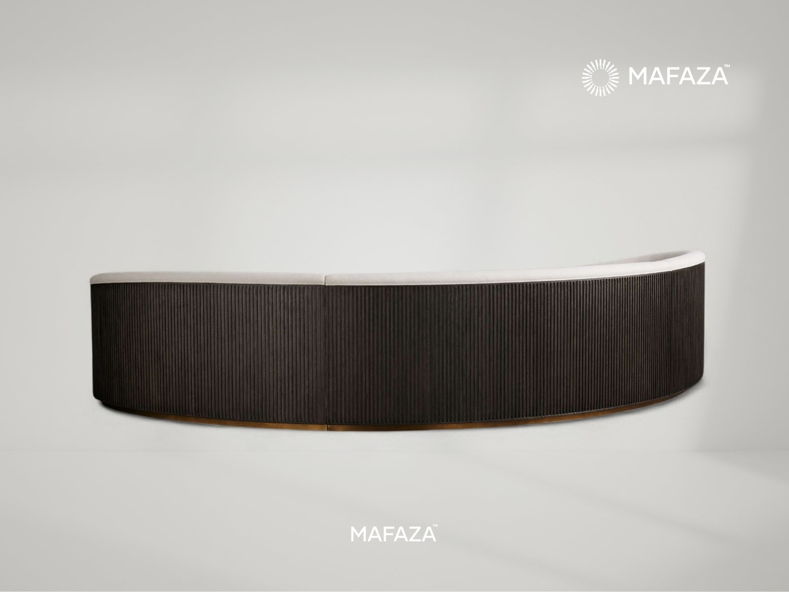 A statement of sophistication, the Fenny 3-Piece Curved Sofa is designed to transform expansive interiors into a gallery of comfort and elegance. Spanning an impressive 540 cm in length, its sweeping silhouette embraces gatherings with effortless charm. Crafted from certified teak wood, the base is adorned with refined ridged detailing along the sides and back, adding depth and character to its sculptural form. Plush upholstery invites hours of relaxation, while its architectural presence makes it more than a sofa, it is a centerpiece of refined living, designed for modern villas, hospitality projects, and grand residences.