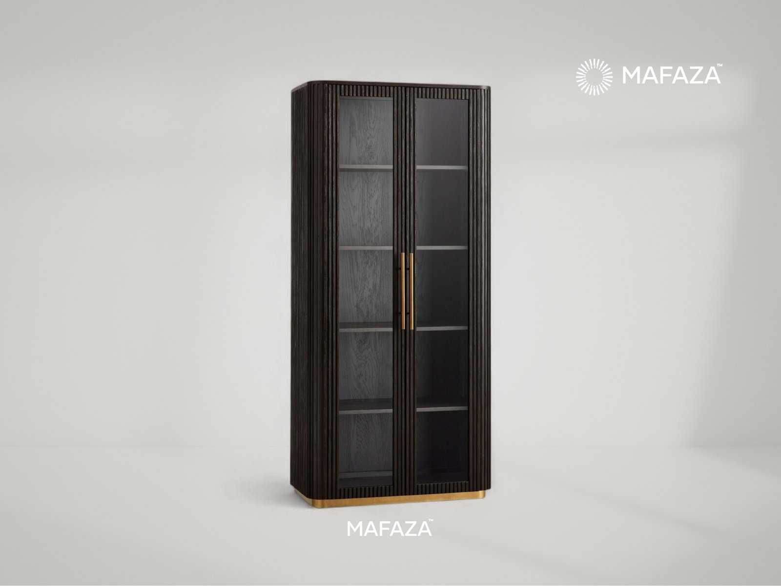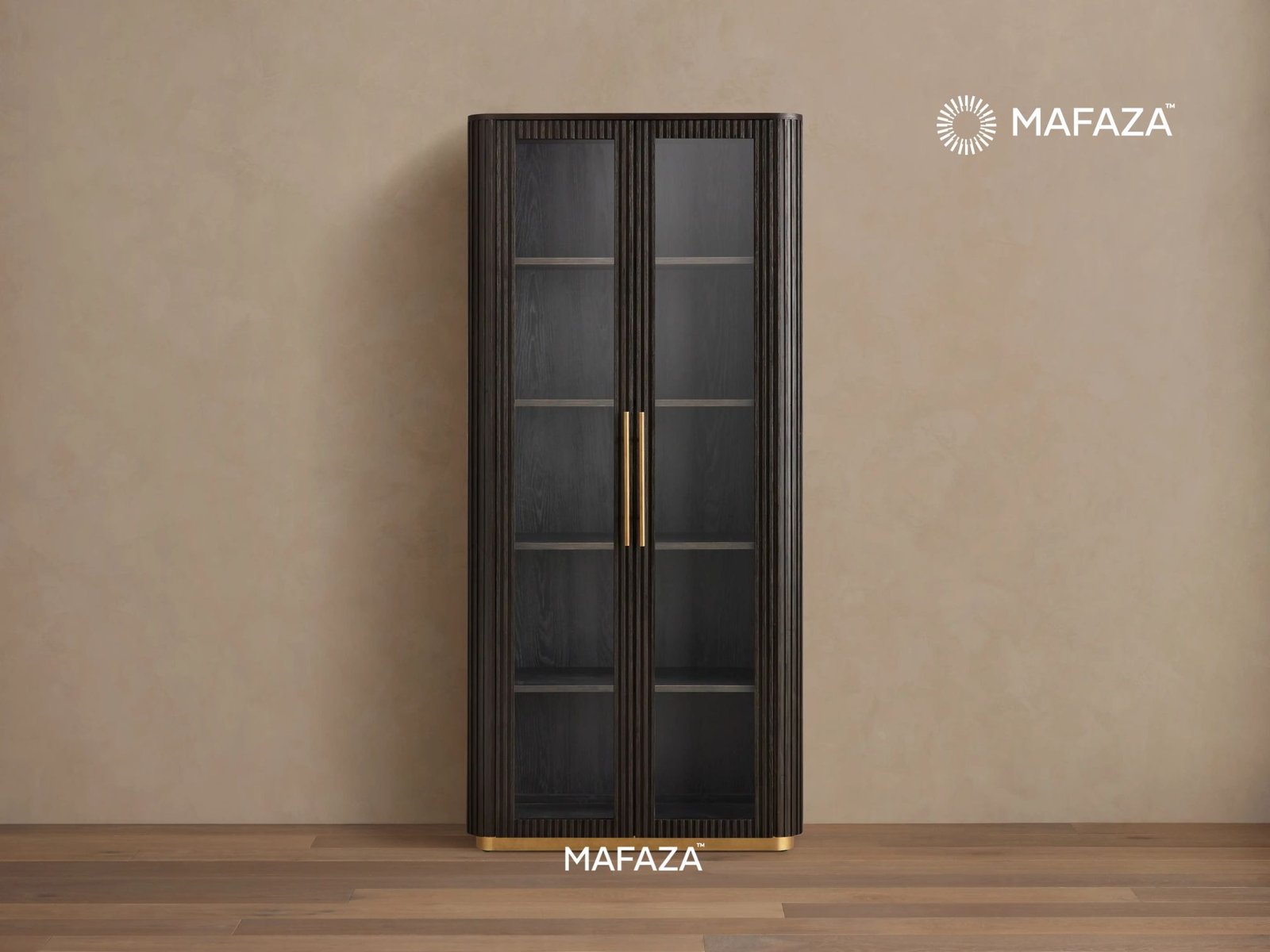 The Fenny Glass Cabinet, which is made from certified teak wood, combines handmade detail with contemporary elegance. Its two glass doors are elegantly surrounded by a fluted frame, exposing enough of shelves for well chosen exhibits. An artistic statement piece for sophisticated settings, the delicate rhythm of its ridged texture and the transparency of glass provide the ideal balance between strength and sophistication.
