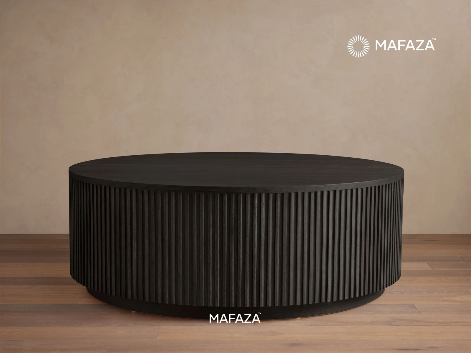 The Fenny Round Coffee Table's sculpted rhythm of fluted wood reflects understated sophistication. Its round shape, made from verified teak wood, adds harmony and flow to any living area. An artistic display of texture and contemporary elegance, the deep, grooved detailing is intended to improve classic rooms and serve as a conversation starter. It reflects light and shadow with subtle drama.
