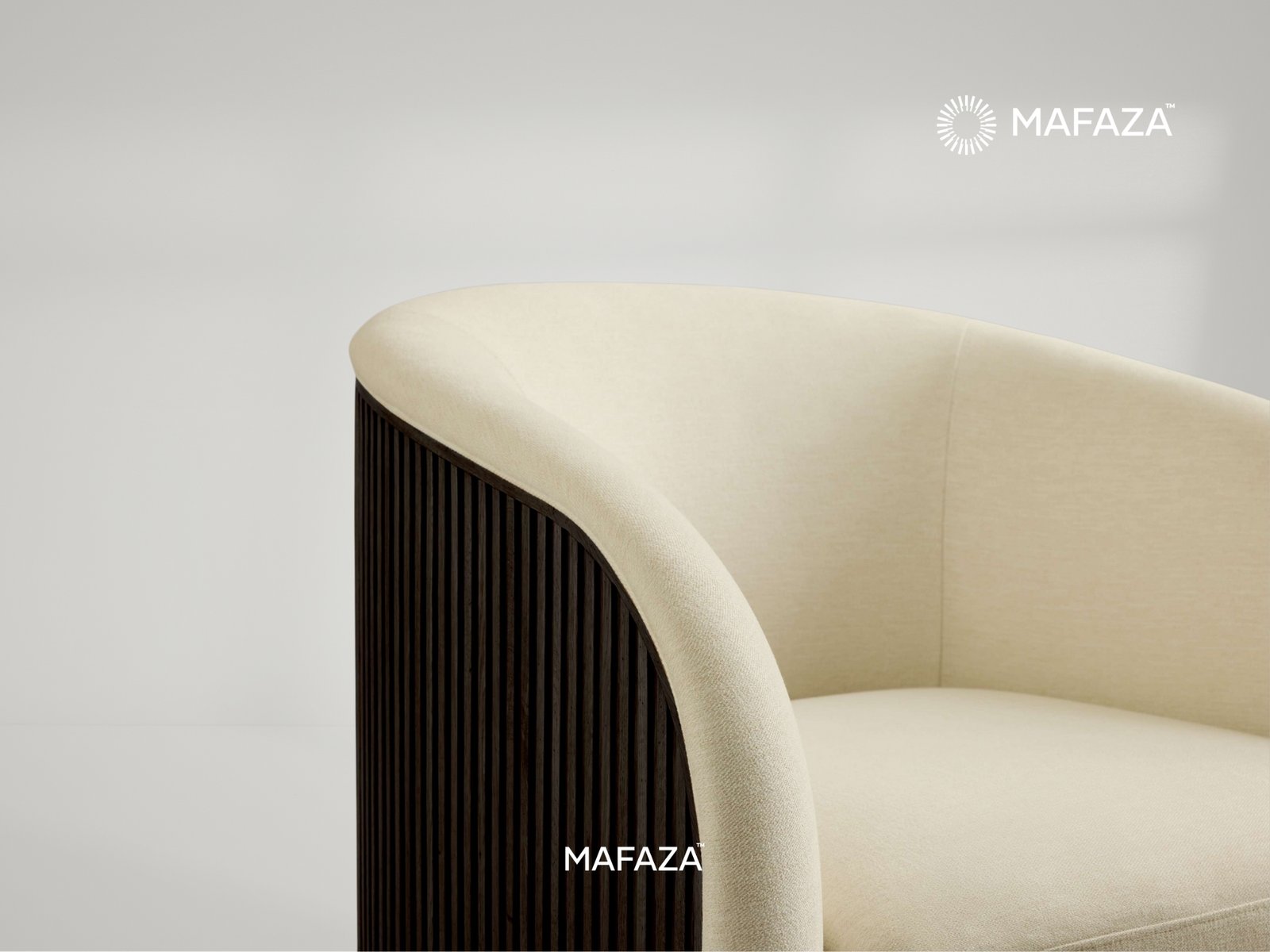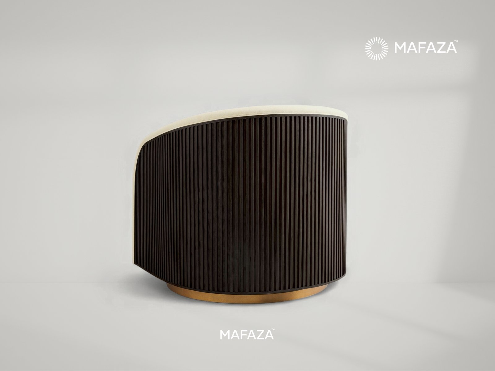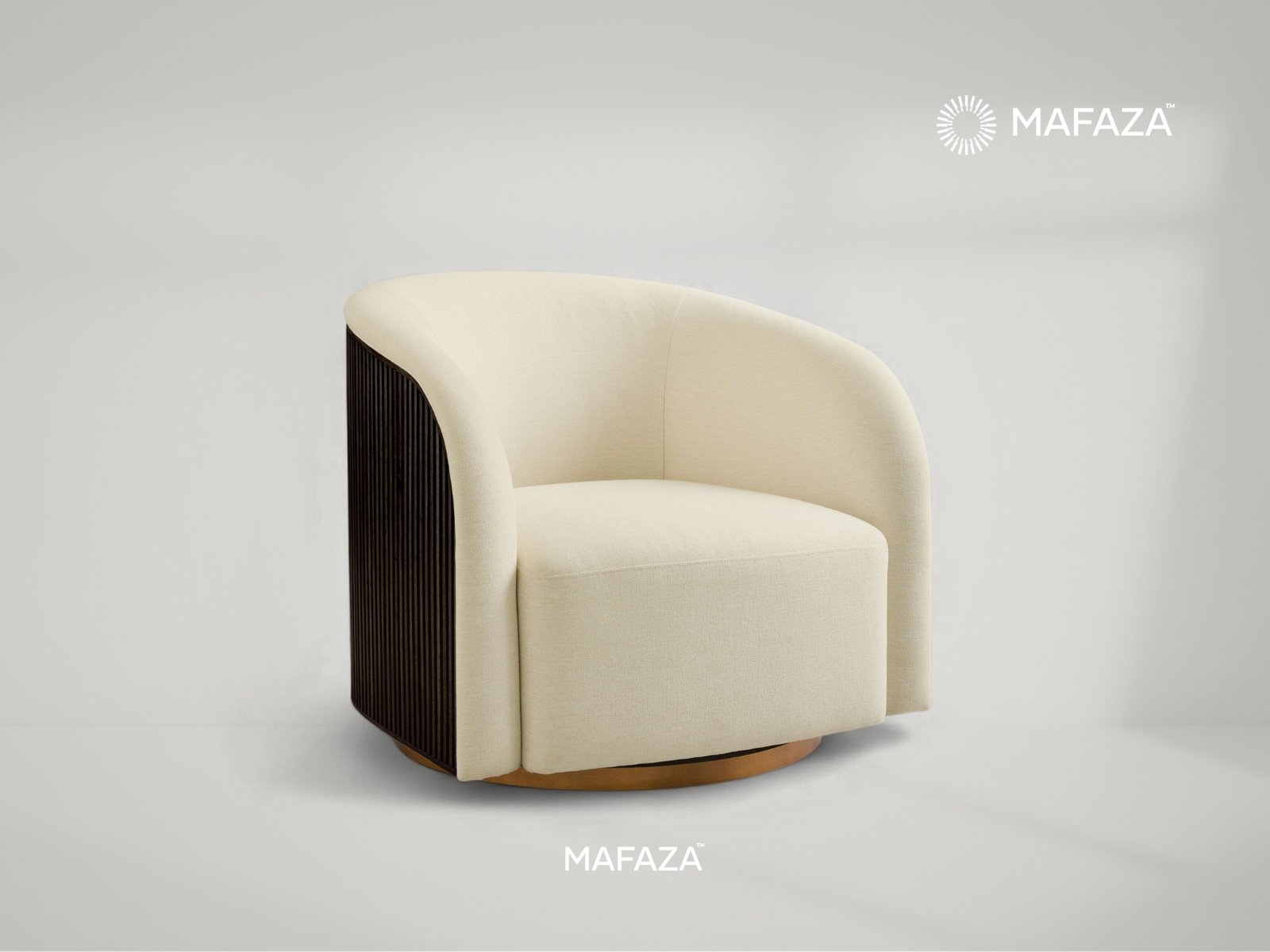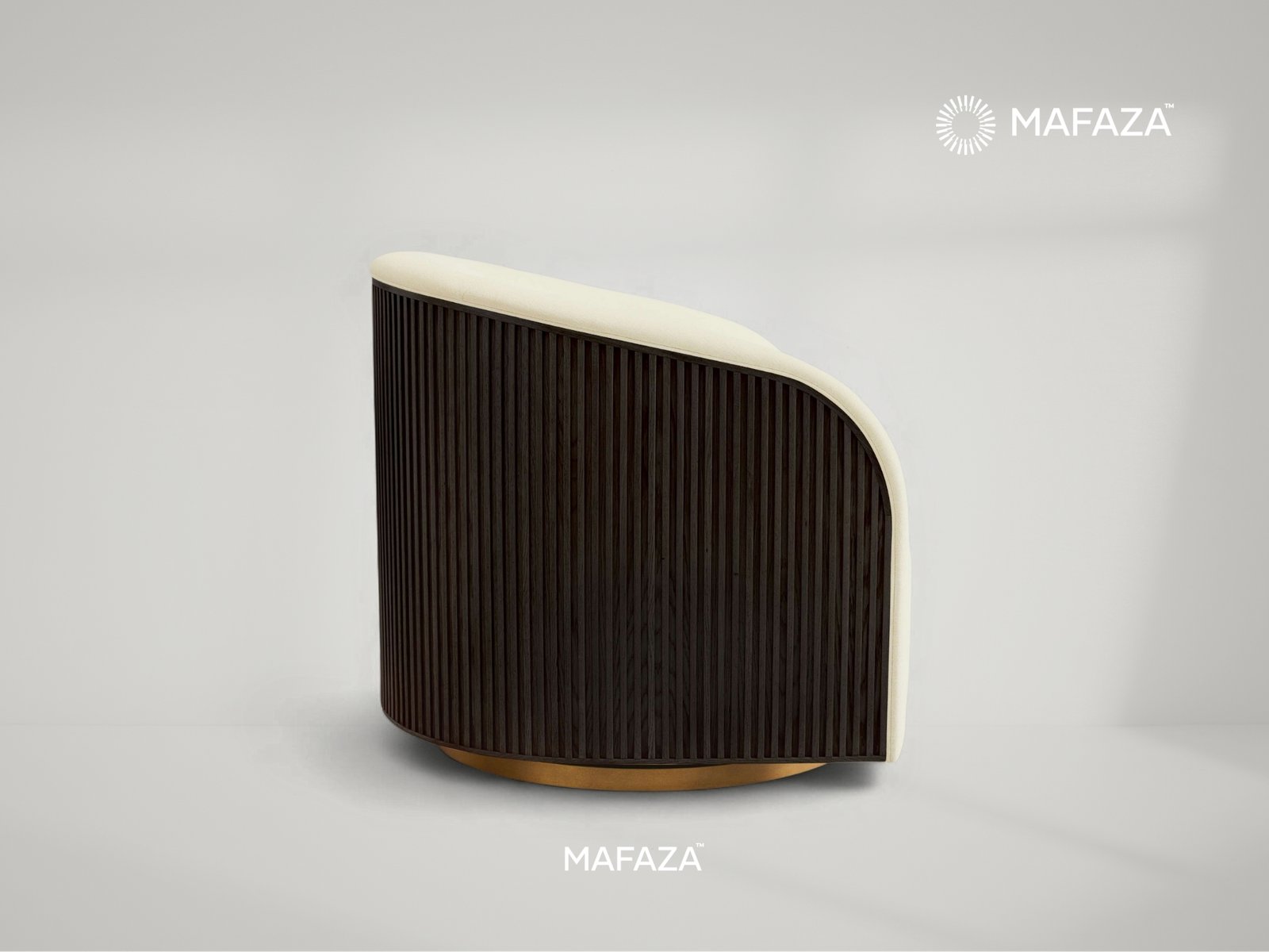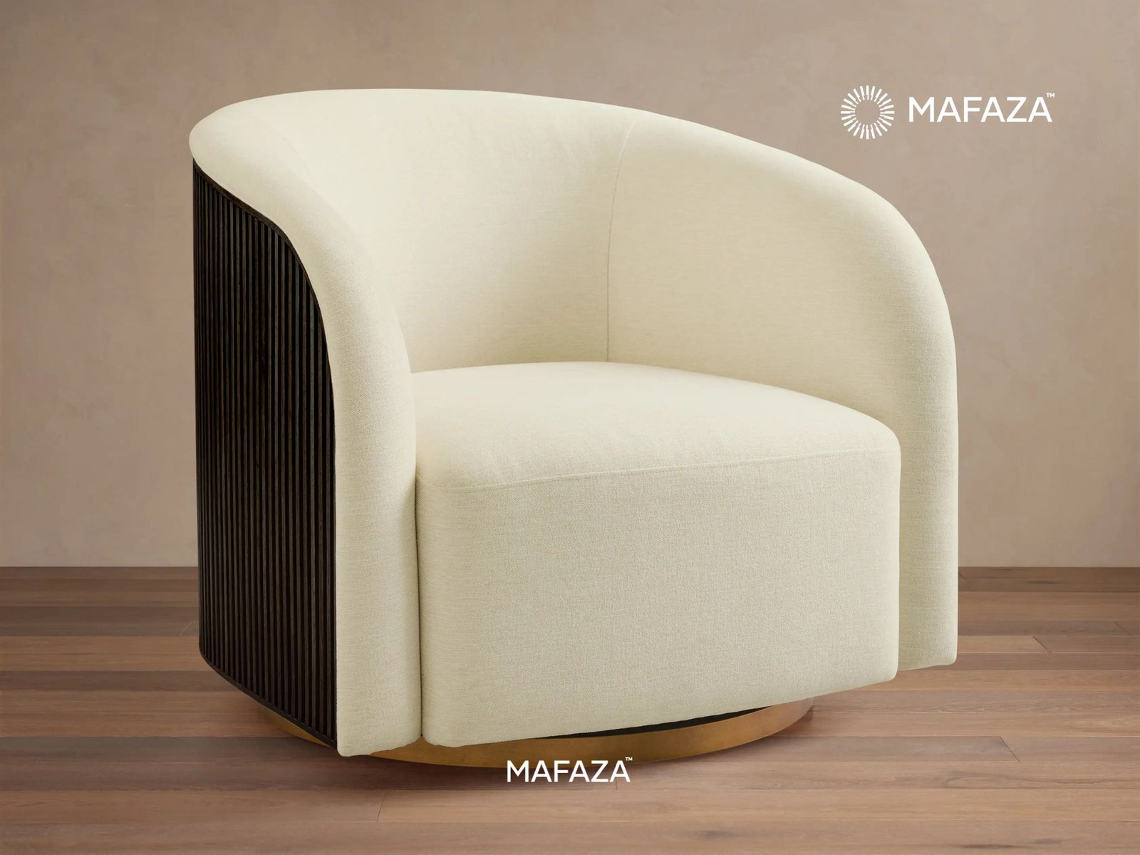 The Fenny Swivel Chair is where modern comfort meets artisanal craftsmanship. Wrapped in soft upholstery, its rounded form invites you to sink in and relax, while the swivel base ensures effortless movement for everyday convenience. What makes Fenny truly distinctive is the finely grooved teak wood detailing that frames its sides and back, adding depth, texture, and a touch of sophistication. Designed to be both functional and striking, this chair transforms any corner into a statement of refined living, blending timeless natural materials with contemporary elegance.