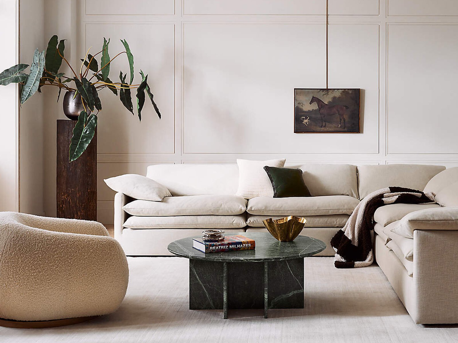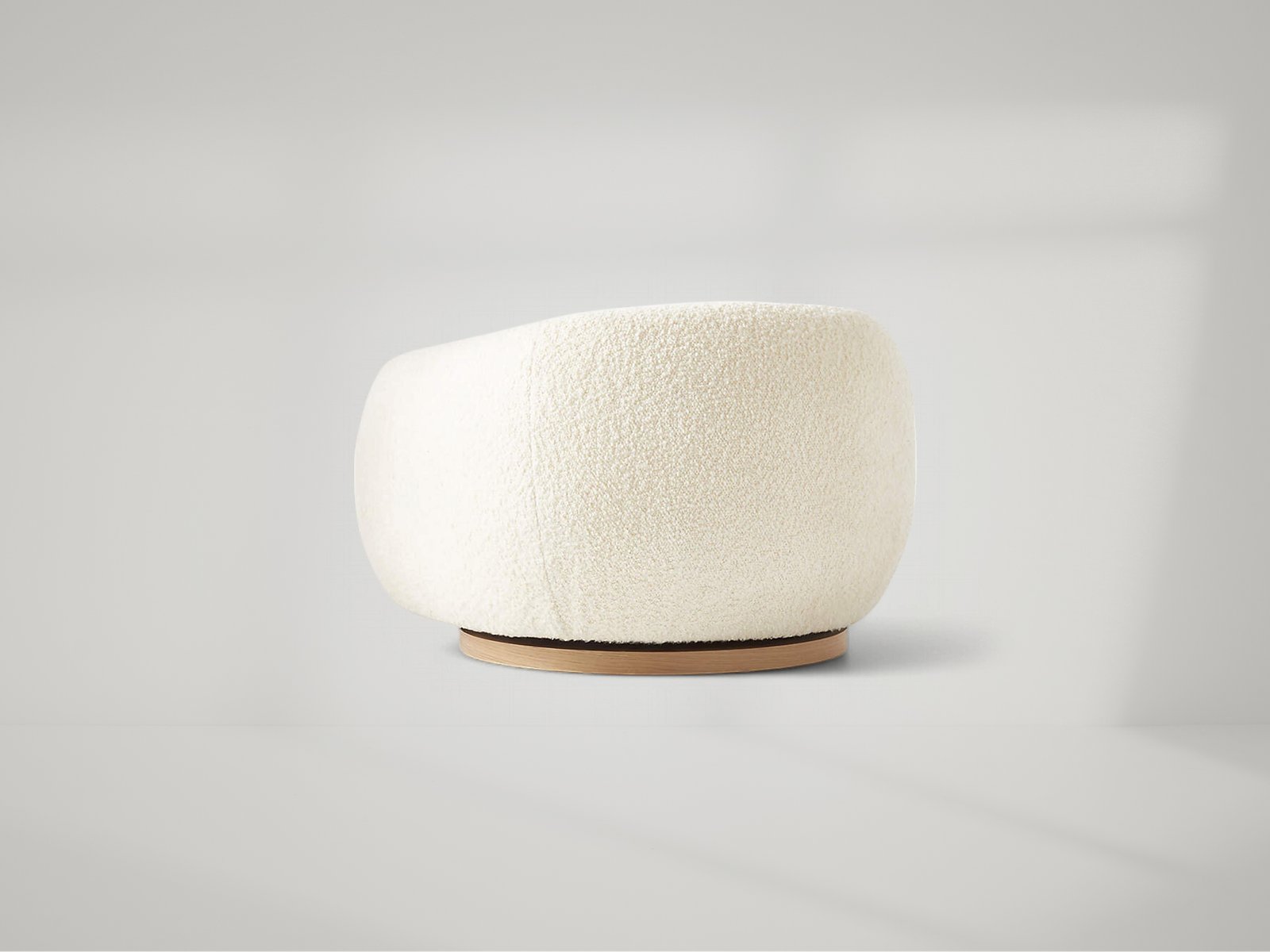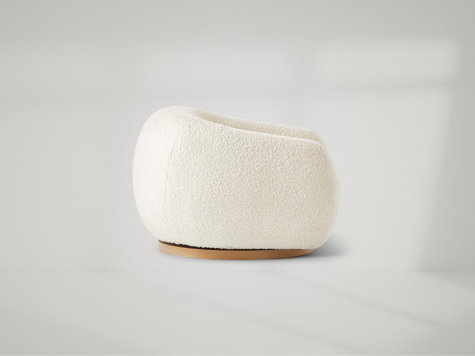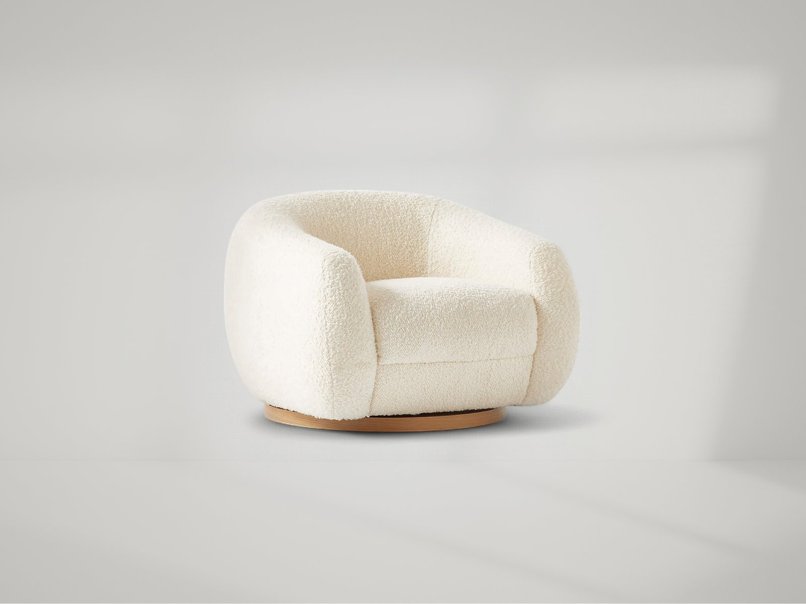 Boucle swivel chair by Los Angeles-based designer Ross Cassidy strikes the perfect balance between modern style and cloud-like comfort. Floating atop a natural oak swivel base, the curved back hugs a generously cushioned seat. The texture-rich boucle features a uniquely fluffy hand for an ultra-plush sit. It's easily one of our most comfortable swivel chairs to date.