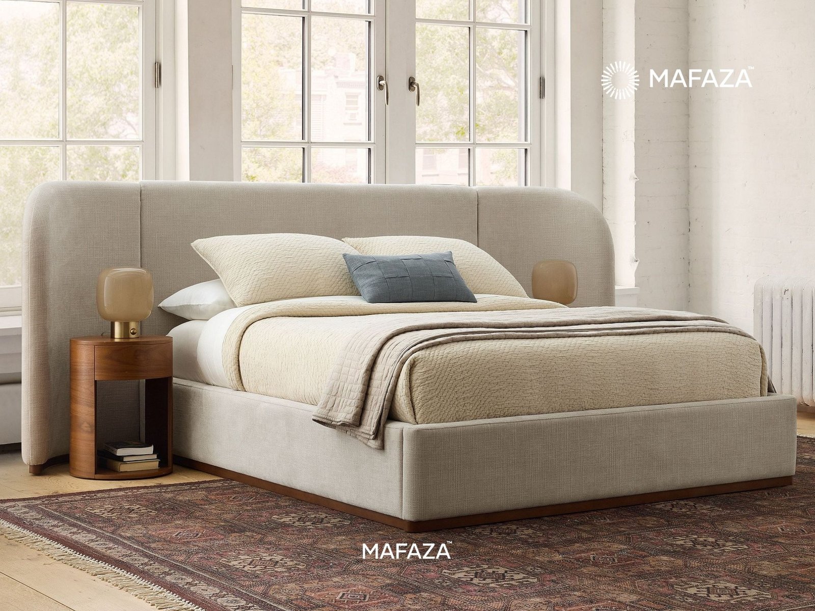 Lyan Upholstered Winged Bed Frame