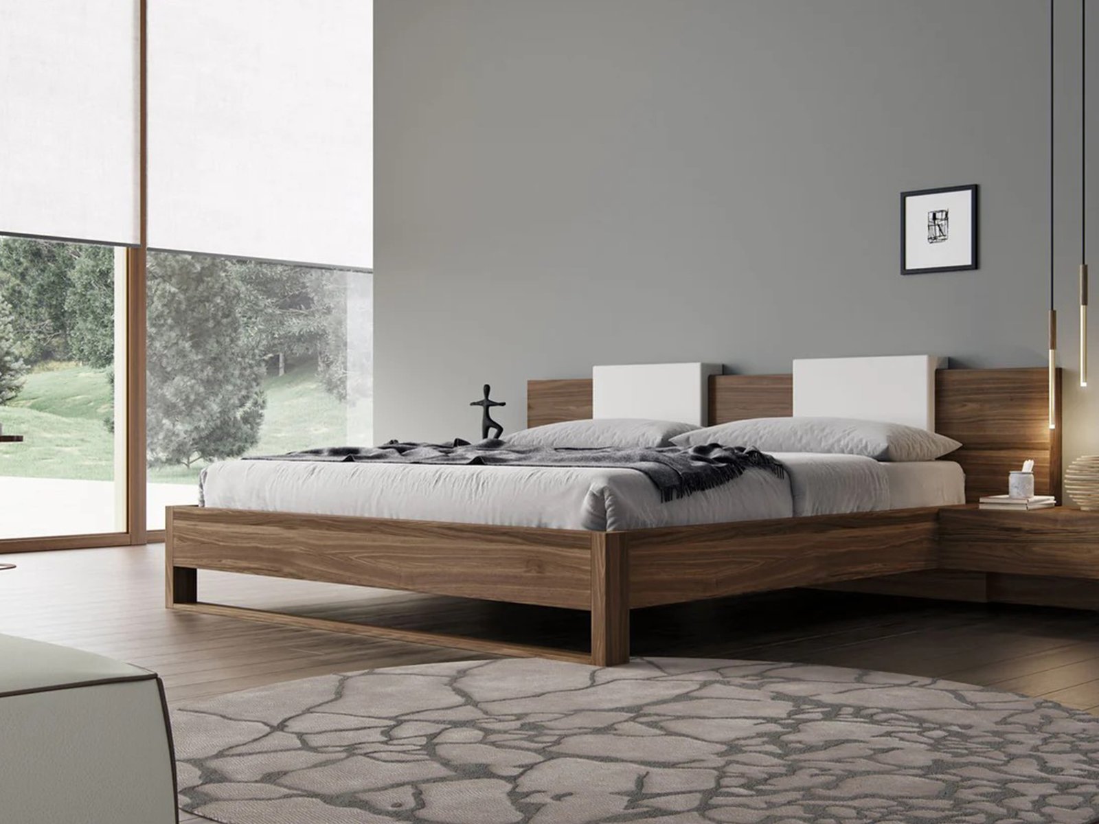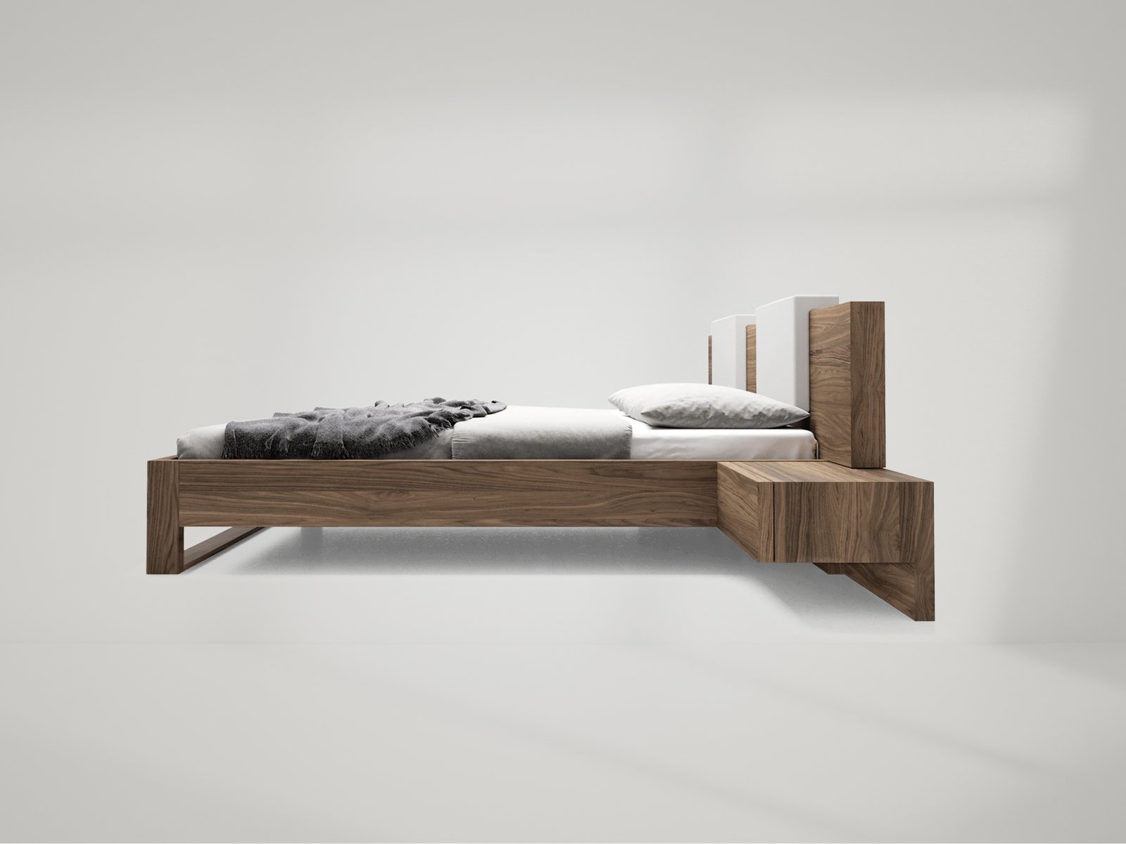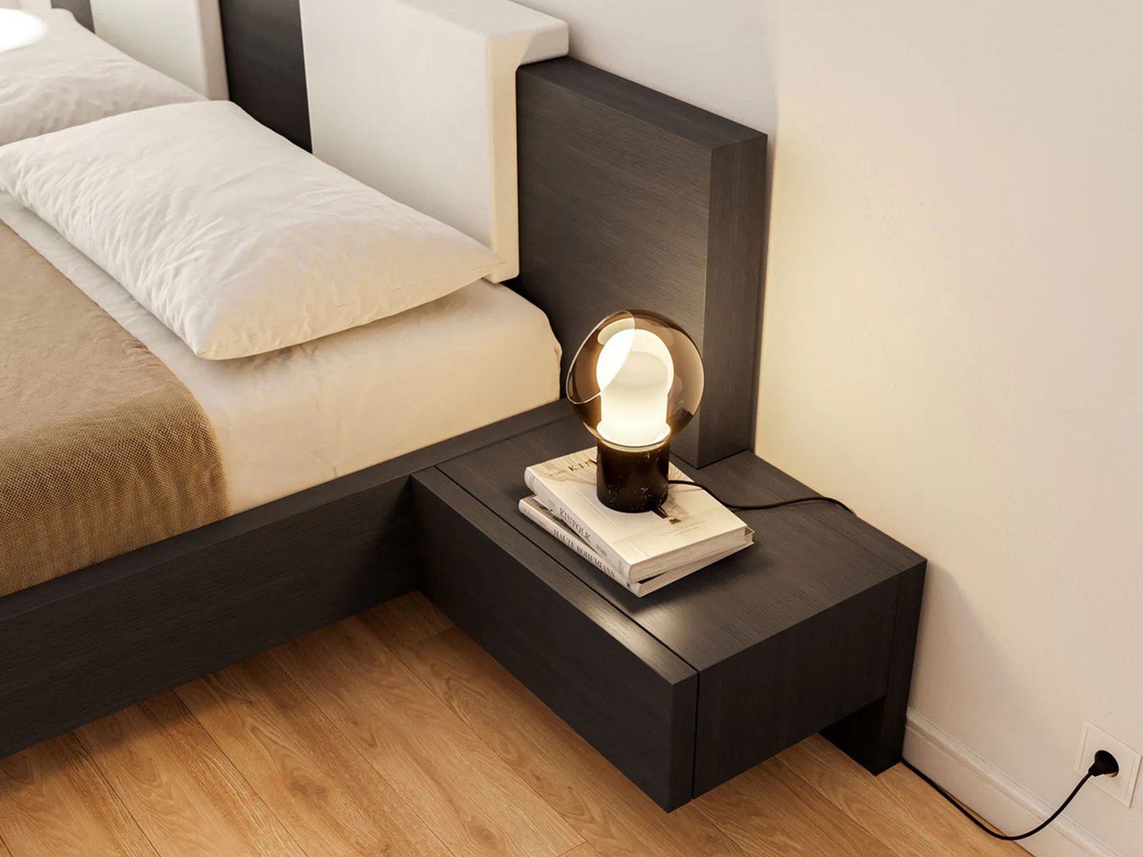Both sleek and warm, the Monroe features an oversized, extended headboard overlapping two "floating" single-drawer nightstands which are seamlessly attached to the bed frame. Drawers feature full-extension, under mount, soft-closing drawer slides.