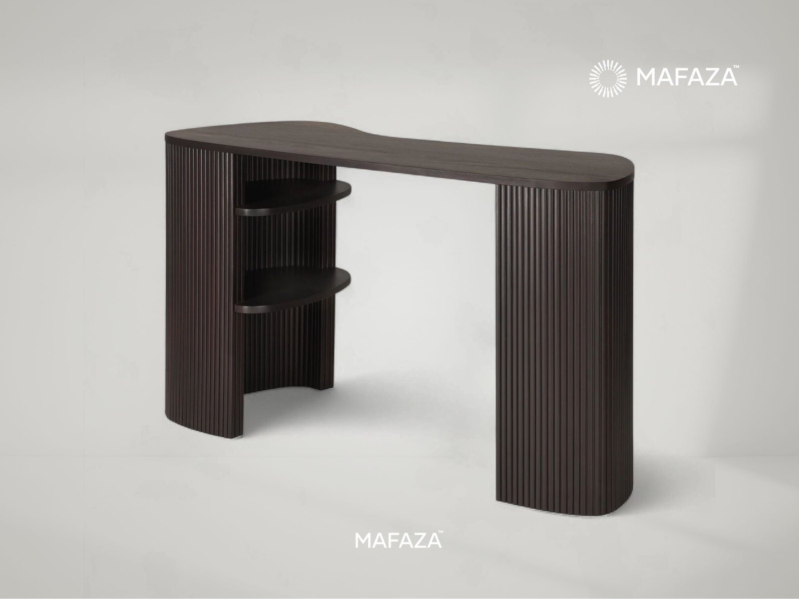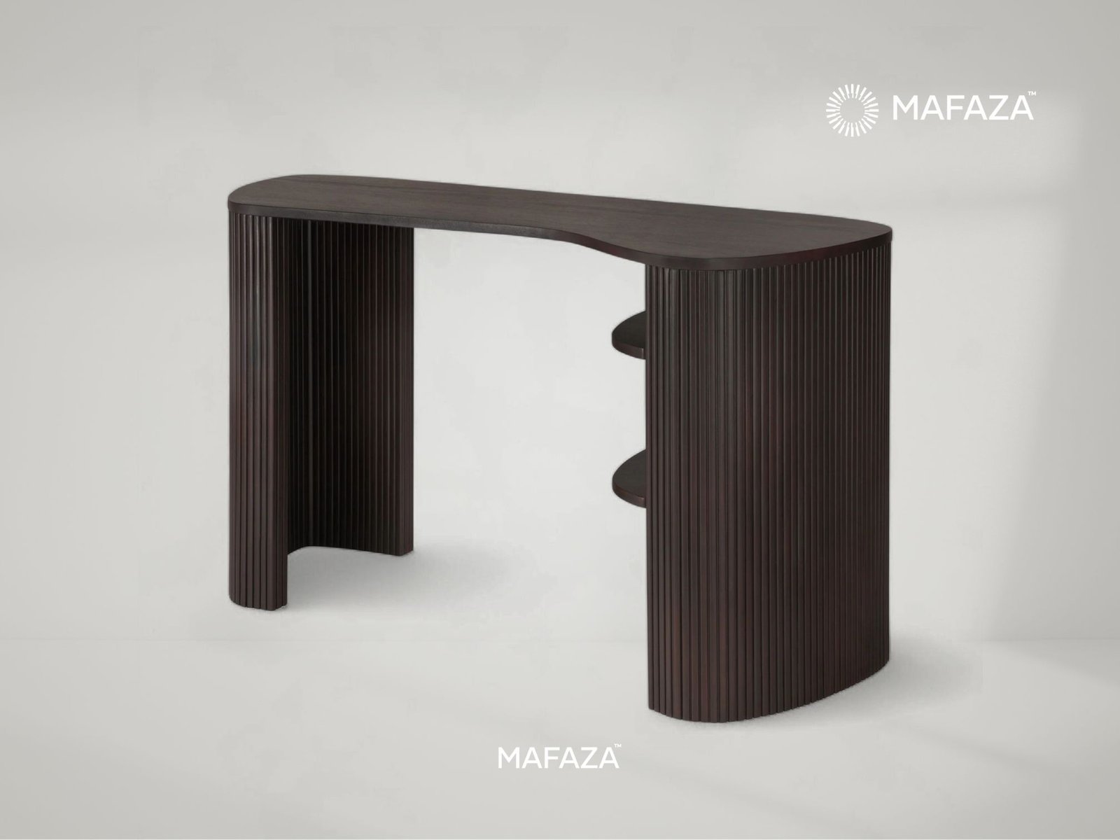 The Nithec Roller Max Desk's unique grooved texture, which frames each edge with individuality, is designed to attract. It is a true statement piece that adds refinement and rhythm to any office. It is made from certified teak wood and combines modern artistry with natural warmth.
