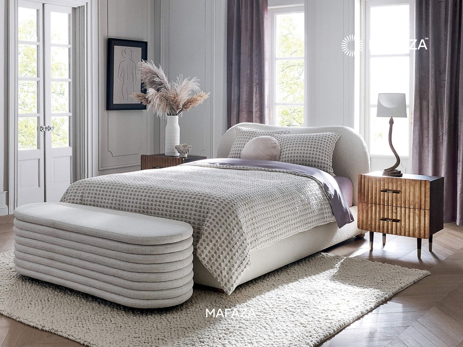 Soft forms and clever practicality are combined in the Orialt Storage Bench. It opens smoothly to expose a roomy storage compartment that is perfect for pillows, throws, or necessities. It is made of certified teak wood and is covered in exquisite upholstery. Orialt is the ideal fusion of everyday functionality and minimalist style because of its sculptural profile, which provides warmth and sophistication to any space.