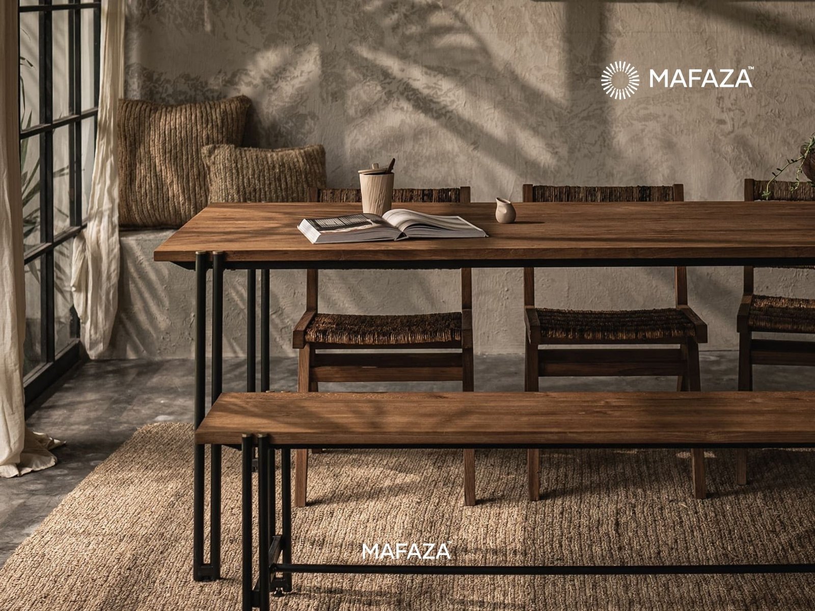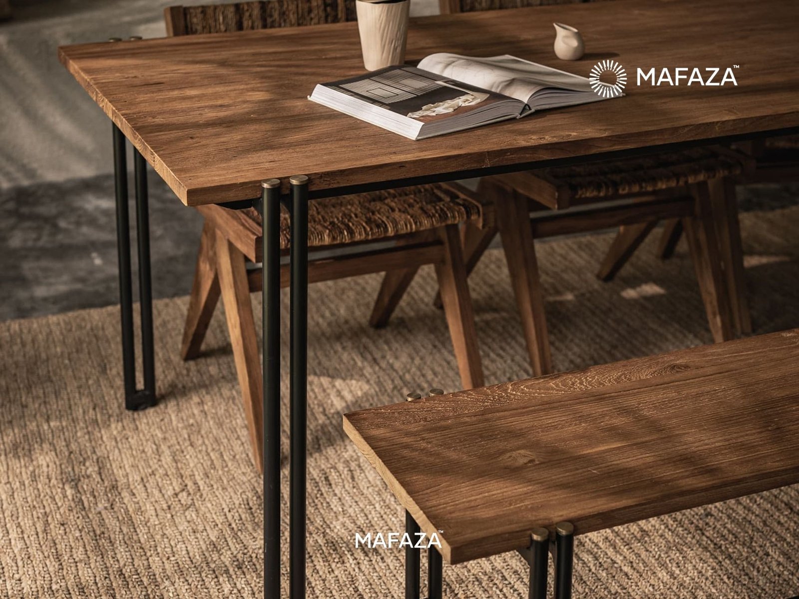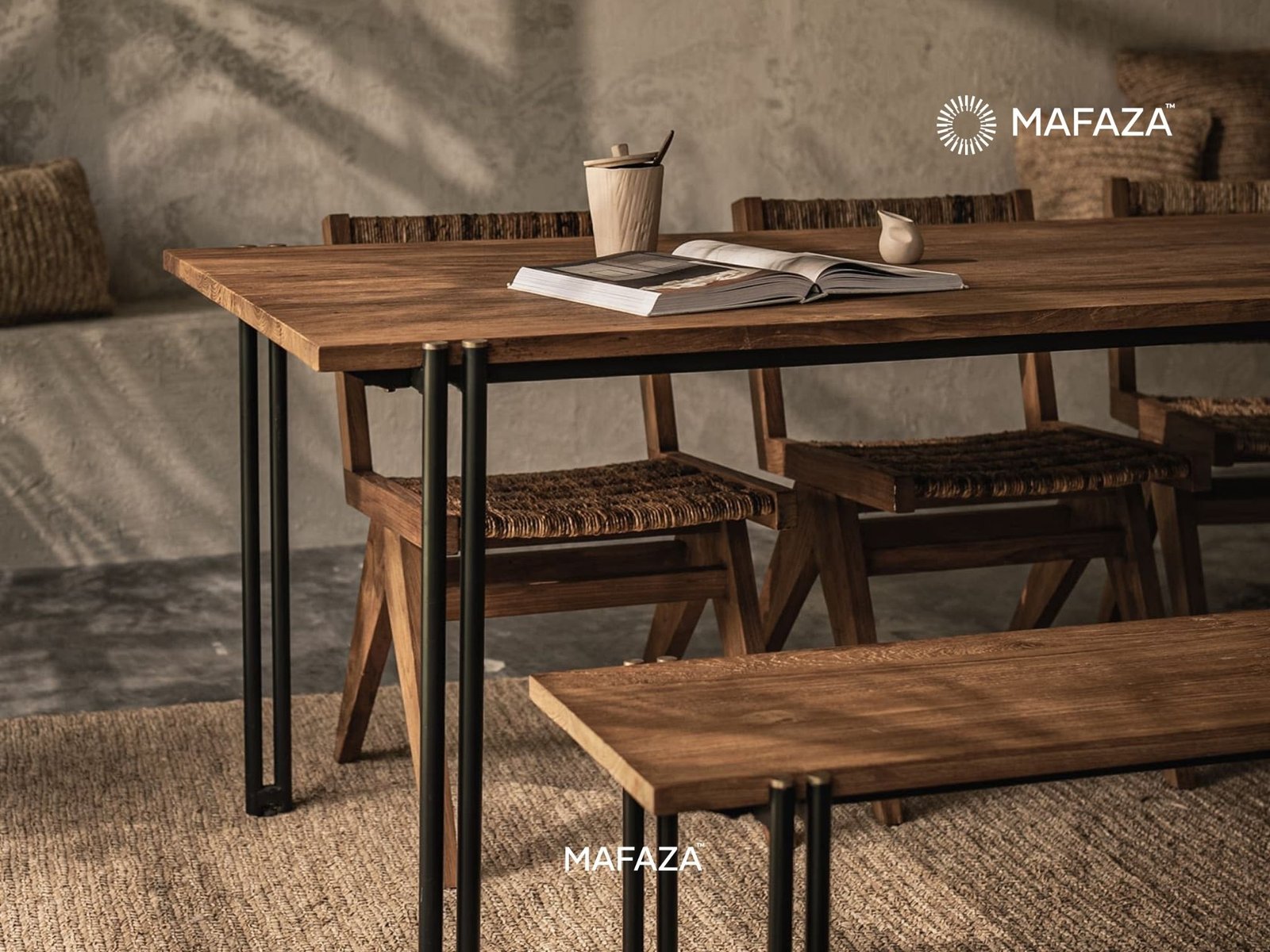 The Outline Dining Table reinvents the harmony between power and creativity. It honors modern architecture in furniture form, with sleek metal legs and verified teak wood construction. A table centerpiece that effortlessly grabs attention is created with bold posture, clean lines, and durable materials.