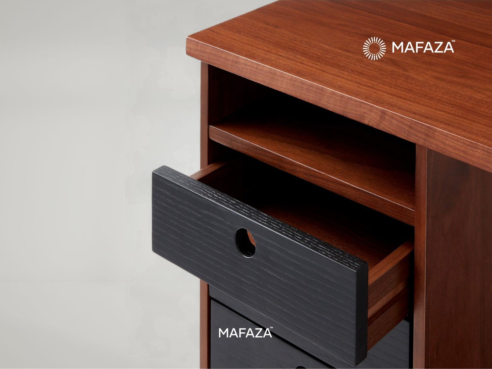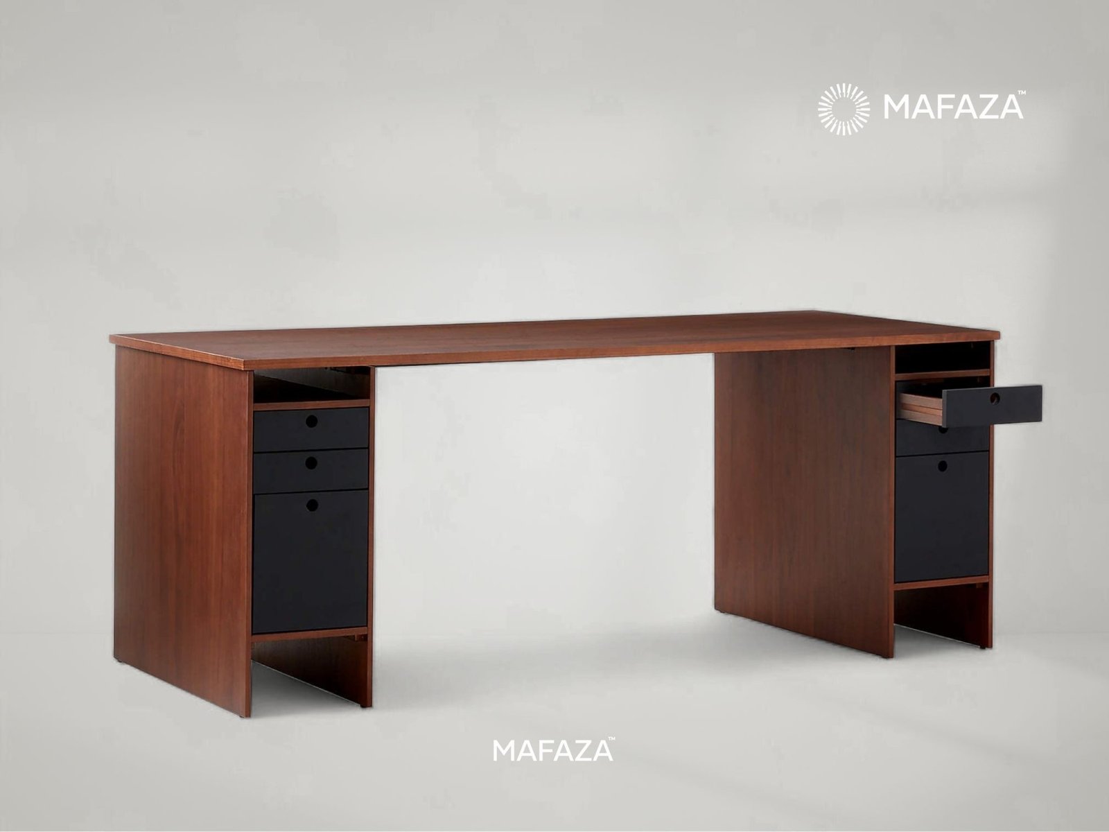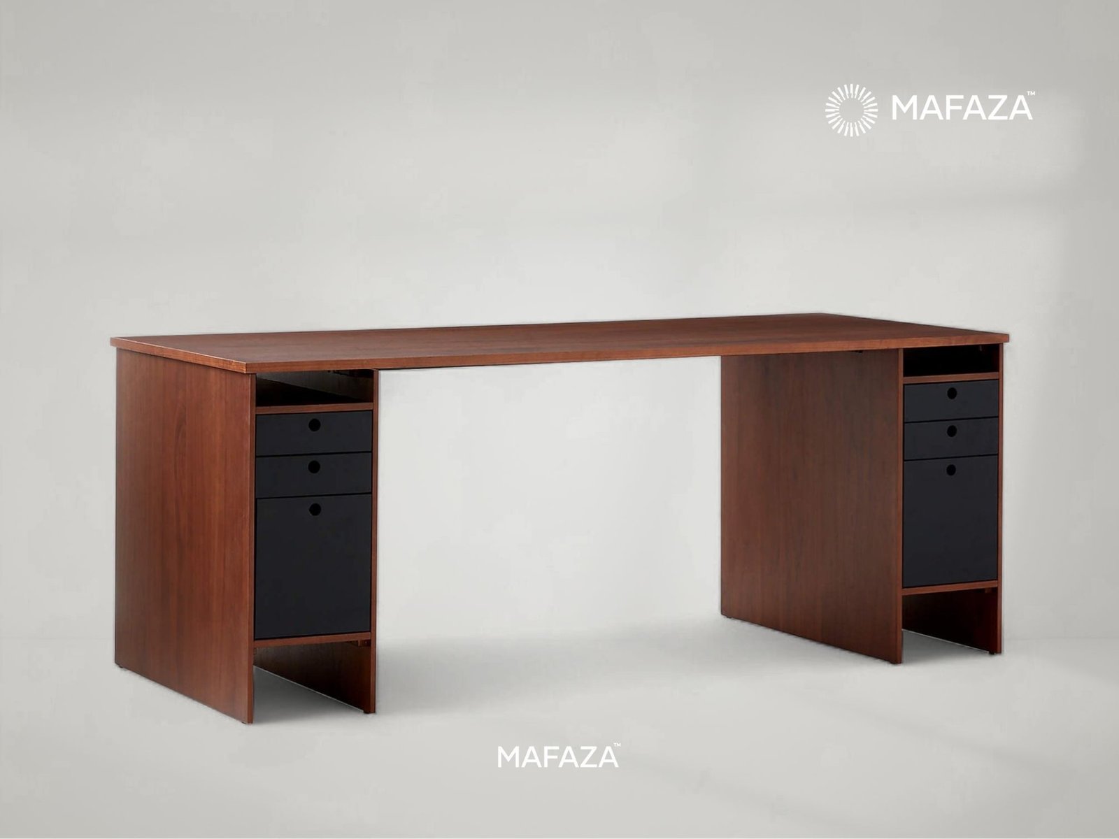 The Proust 6-Drawer Desk is a sophisticated and symmetrical example of balance. It has six drawers (three on each side) and is made of certified teak wood for easy organization. A desk meant to grab attention and stimulate productivity.