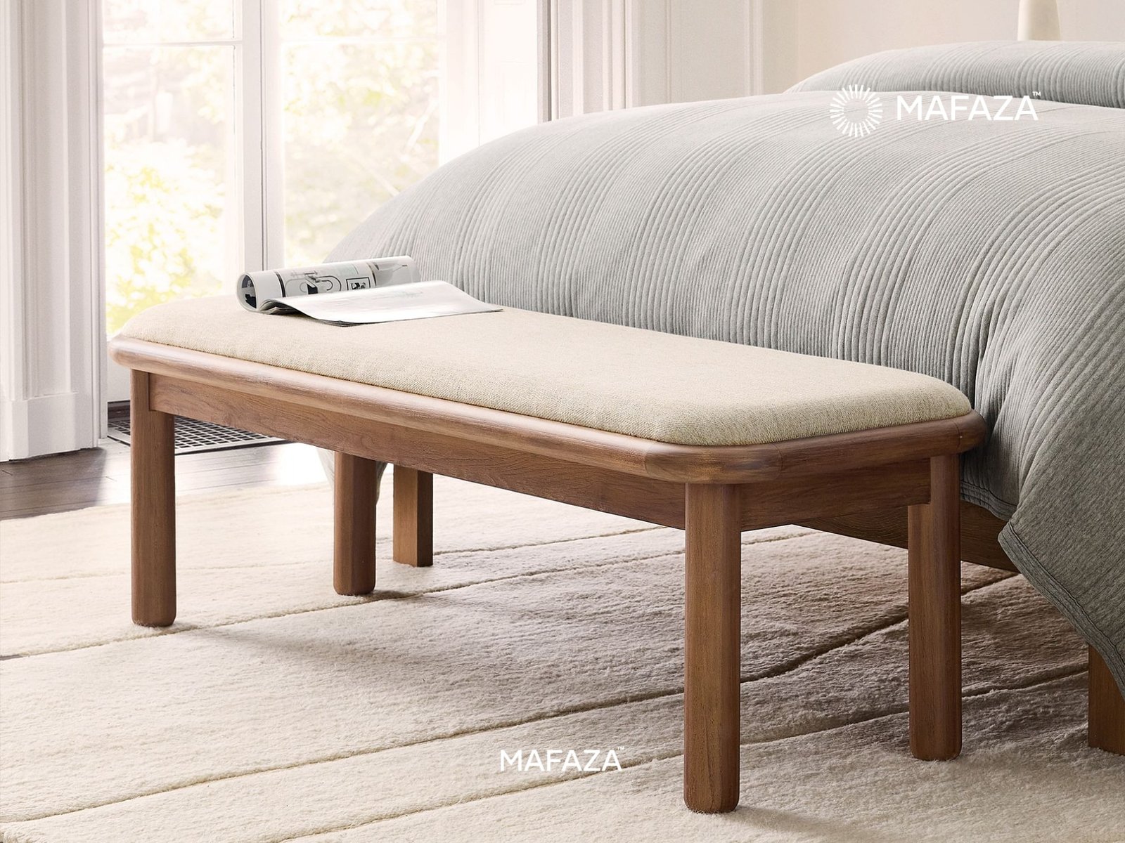 The Selm Bench embodies minimalist living by striking a balance between everyday use and the beauty of nature. Its comfortable padded seat and clean lines, which are crafted from certified teak wood, add coziness to any area of your house. Through classic craftsmanship, Selm provides understated sophistication whether it is positioned in a foyer, beside the dining table, or at the foot of your bed.