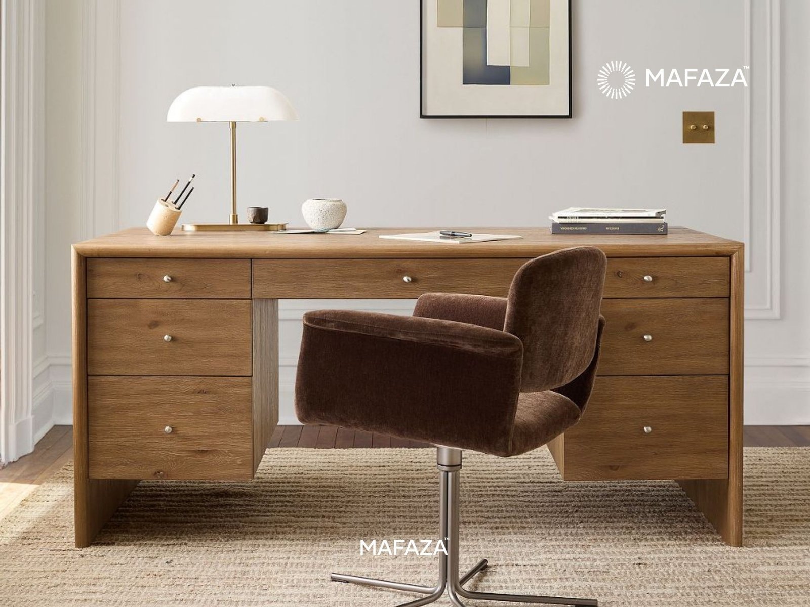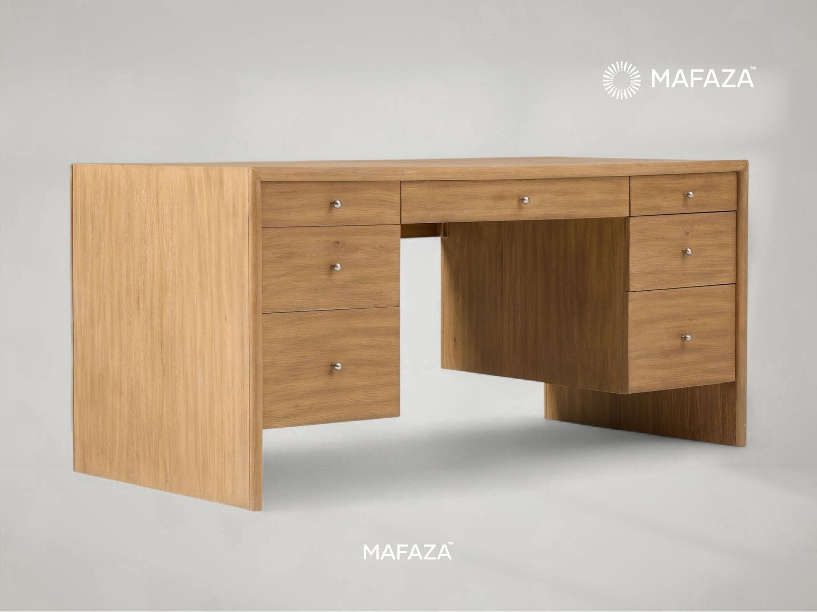 The Selm Executive Desk is a timeless example of teak authority. It is a masterpiece of craftsmanship that combines classic design and efficiency, with seven drawers for optimal storage. It is perfect for leaders who value substance and elegance in every detail.