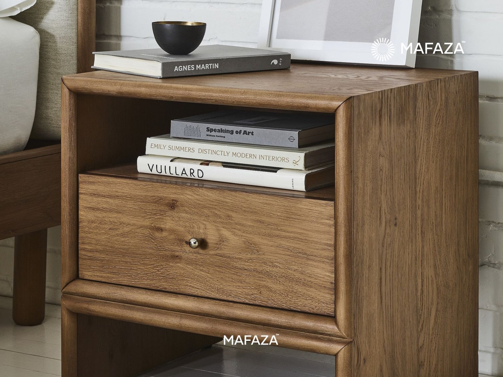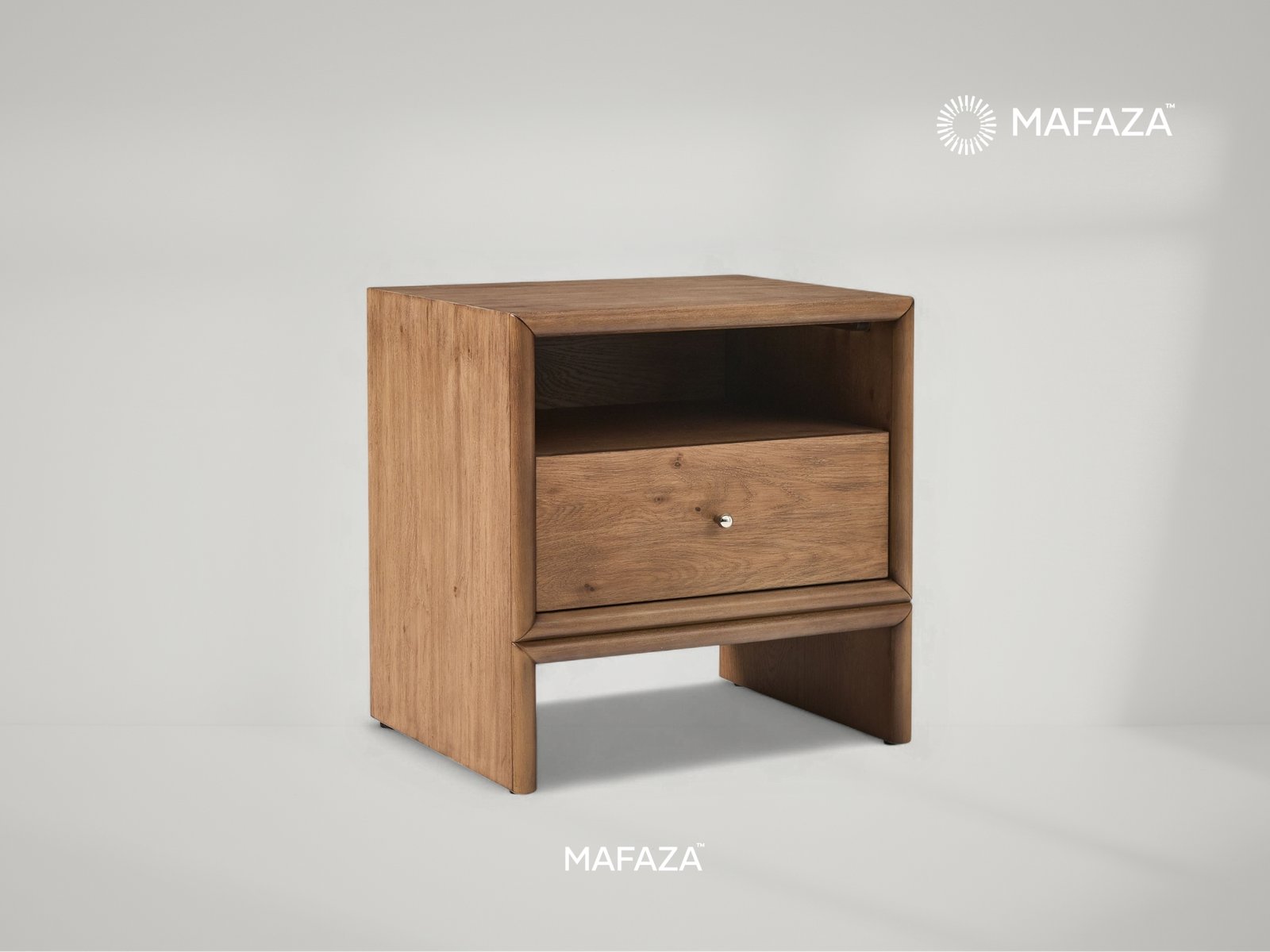 The Selm Nightstand's understated design and expertly crafted teak wood finish redefine elegance at the bedside. Your necessities are neatly stored in a single drawer, and your bedtime reading materials or décor are easily accessible from the open shelf above. Its organic hues and gentle edges give it a serene, welcoming appearance that adds coziness and warmth to your own haven.
