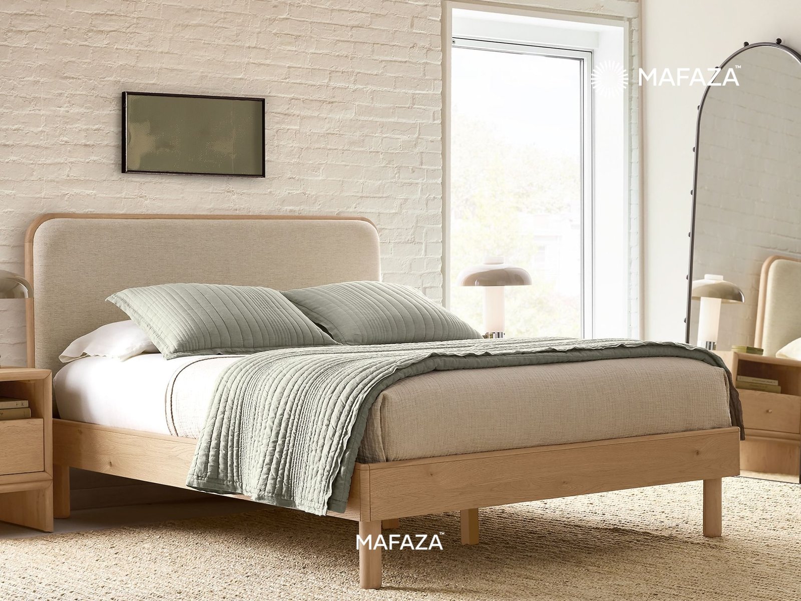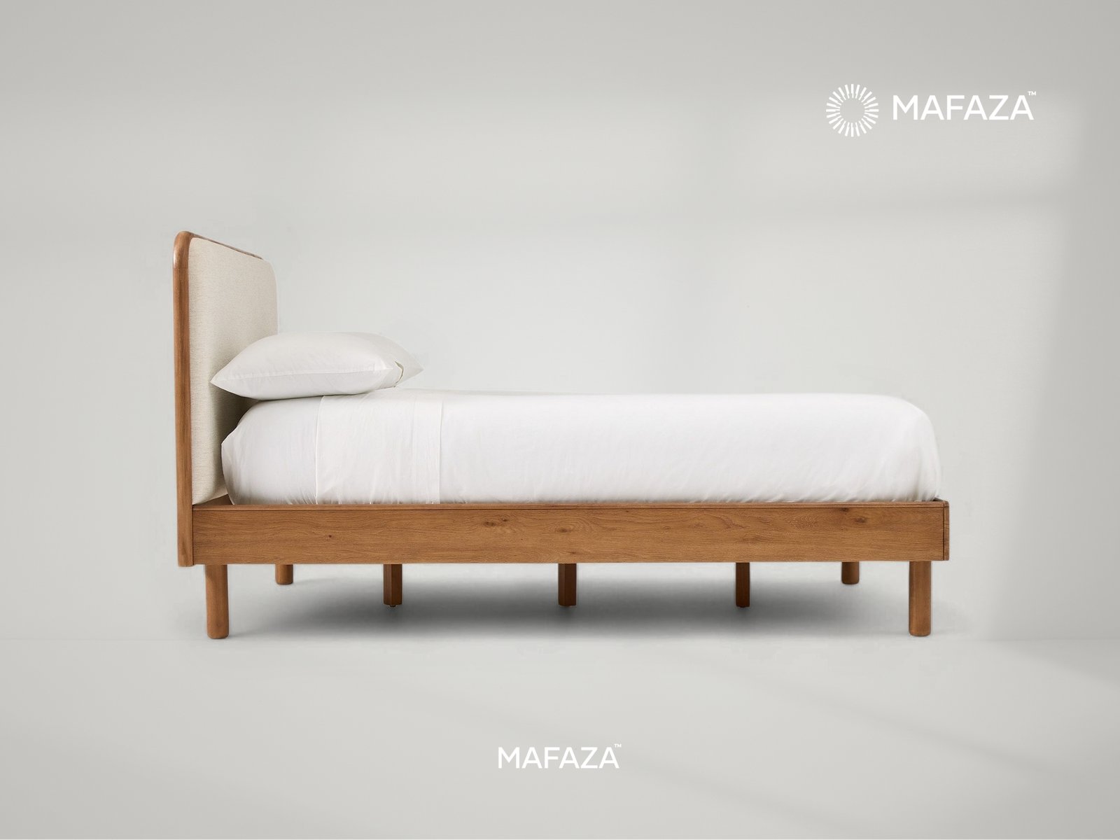 The Selm Upholstered Bed Frame brings a balance of softness and strength to your bedroom. Crafted from certified teak wood, its sturdy base ensures long-lasting durability, while the padded upholstered headboard adds a layer of comfort for reading, relaxing, or unwinding at the end of the day. With its clean design and warm natural tones, Selm effortlessly complements both modern and timeless interiors. Built for those who value quality and refined aesthetics, this bed transforms restful moments into an experience of everyday luxury.