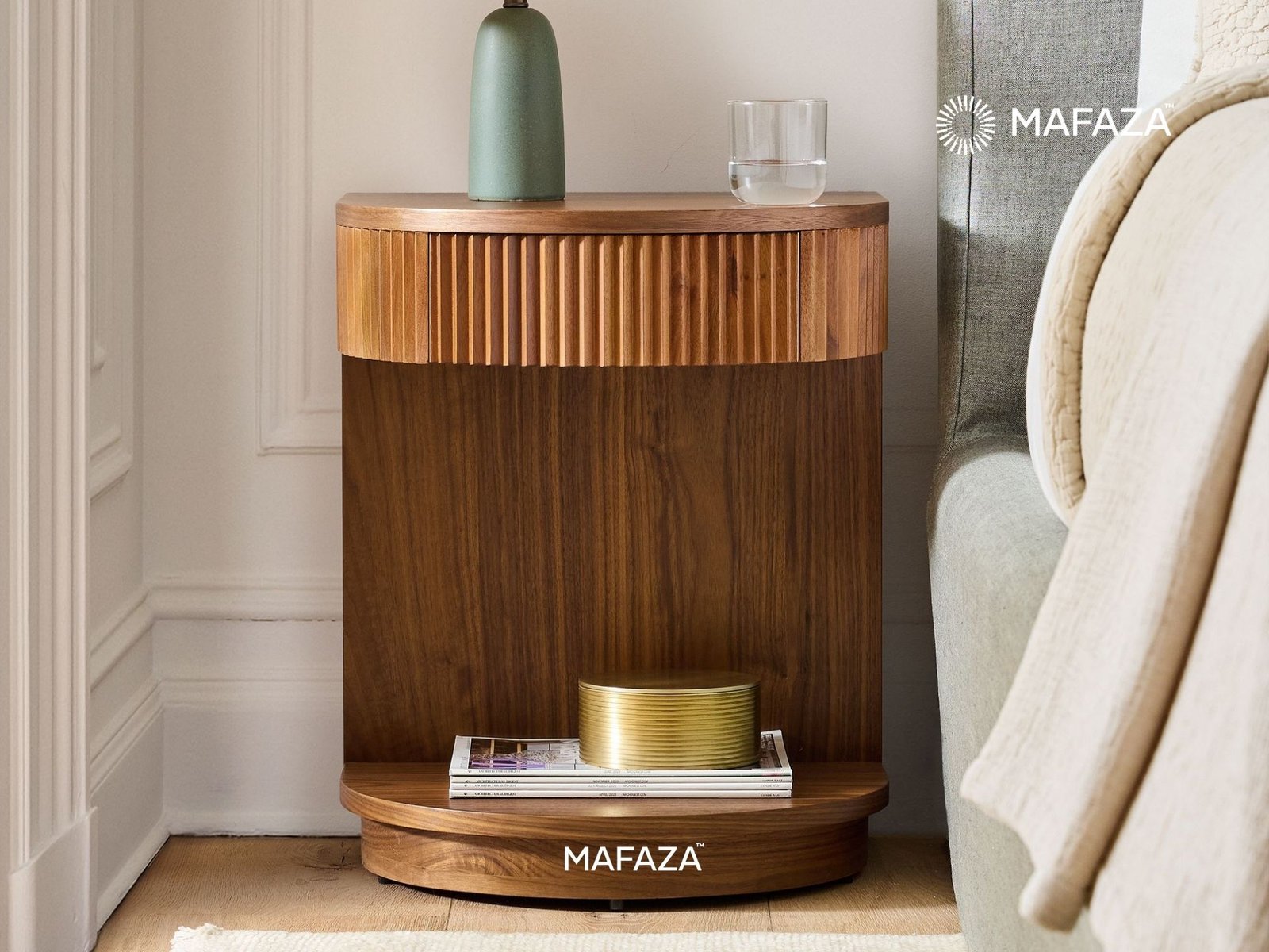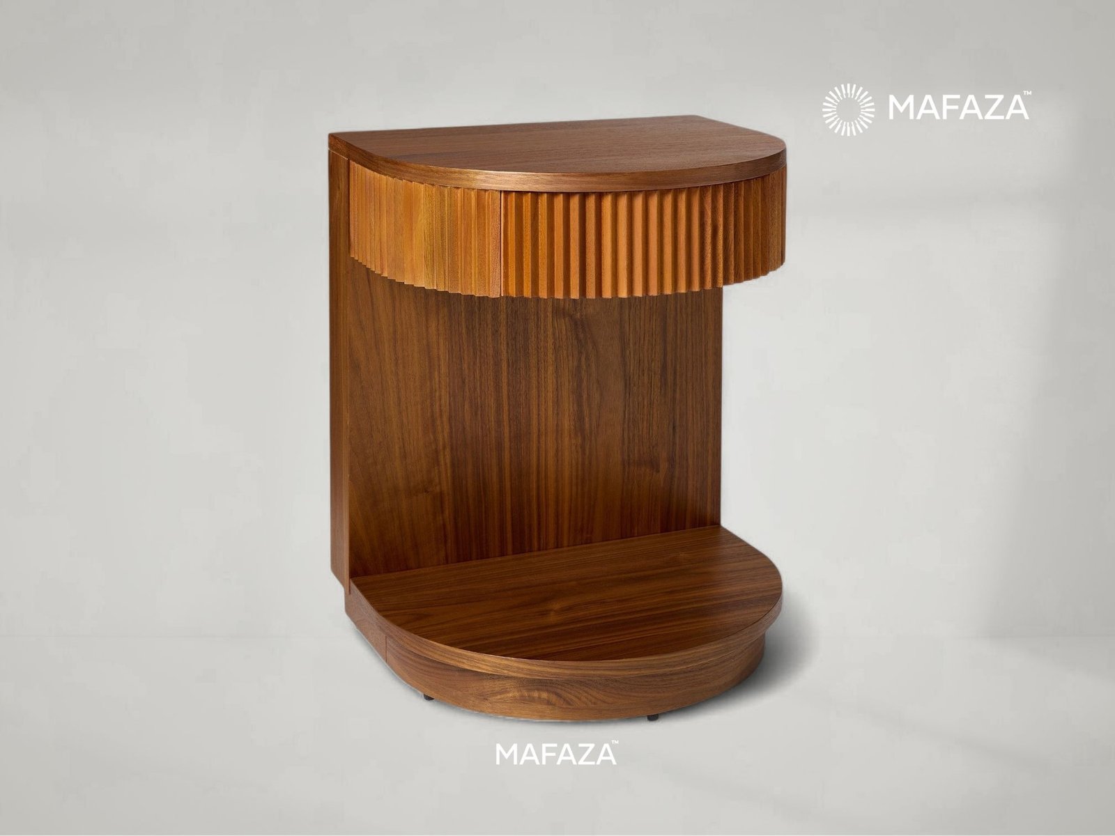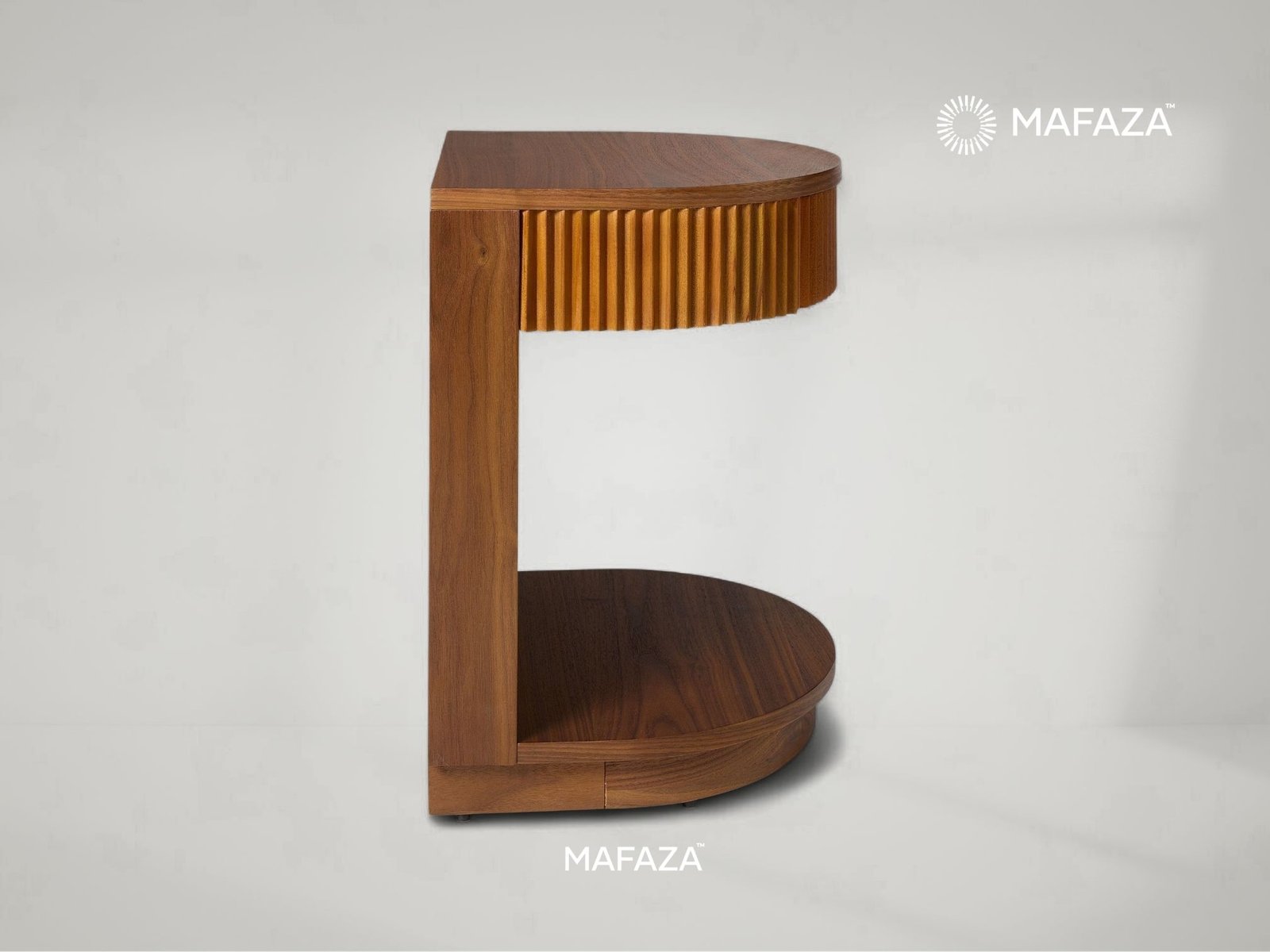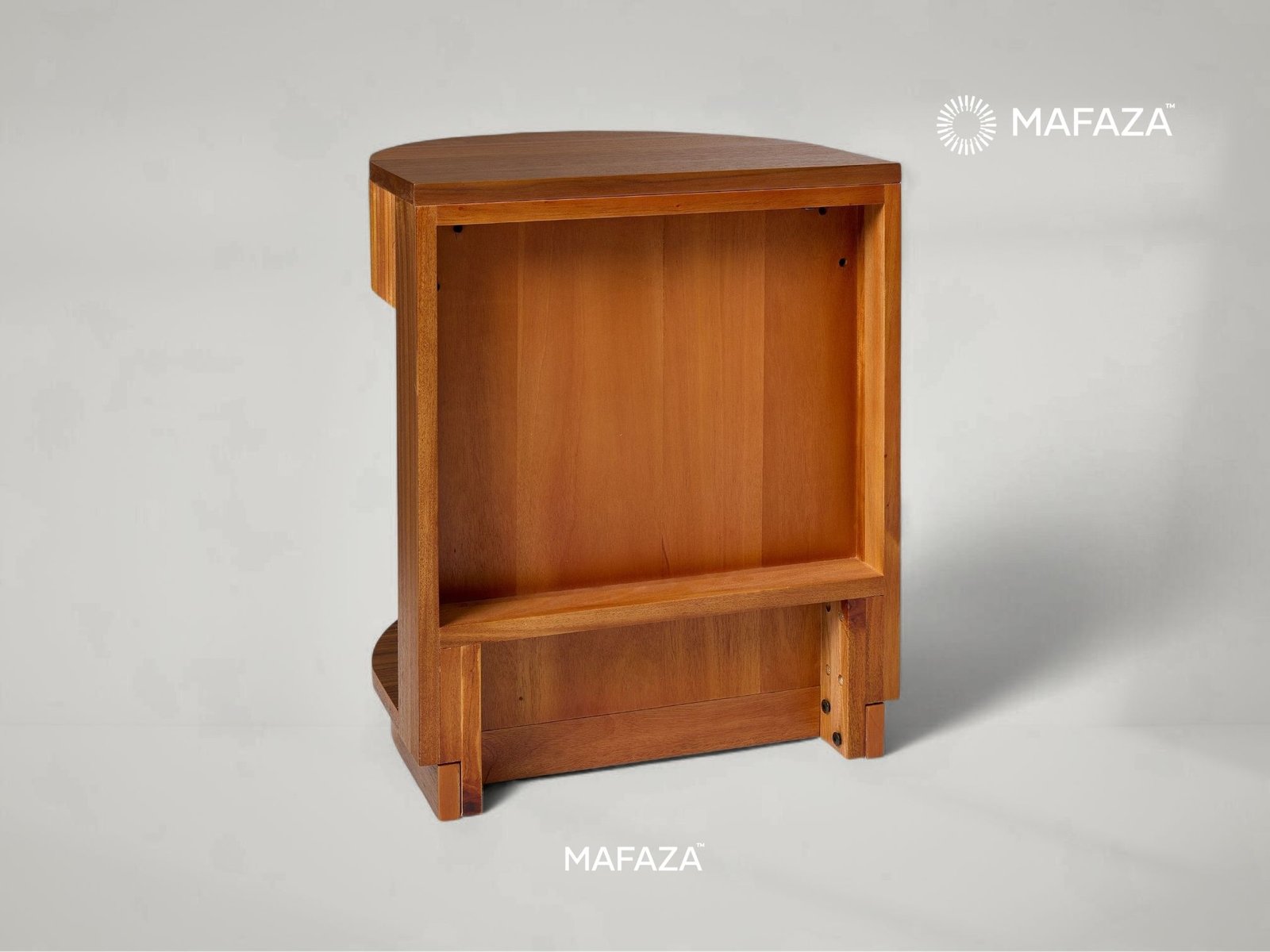 Imagine having a bedside friend that makes your morning ritual more enjoyable. This sculpture highlights the rich, golden grains of Certified Teak Wood and pays homage to minimalist elegance. Its robust construction and simple lines provide a stabilizing presence, keeping your nighttime necessities close at hand while infusing your room with a hint of organic richness. It is the subtle detail that transforms a bedroom into a private haven and is made for durability and style.