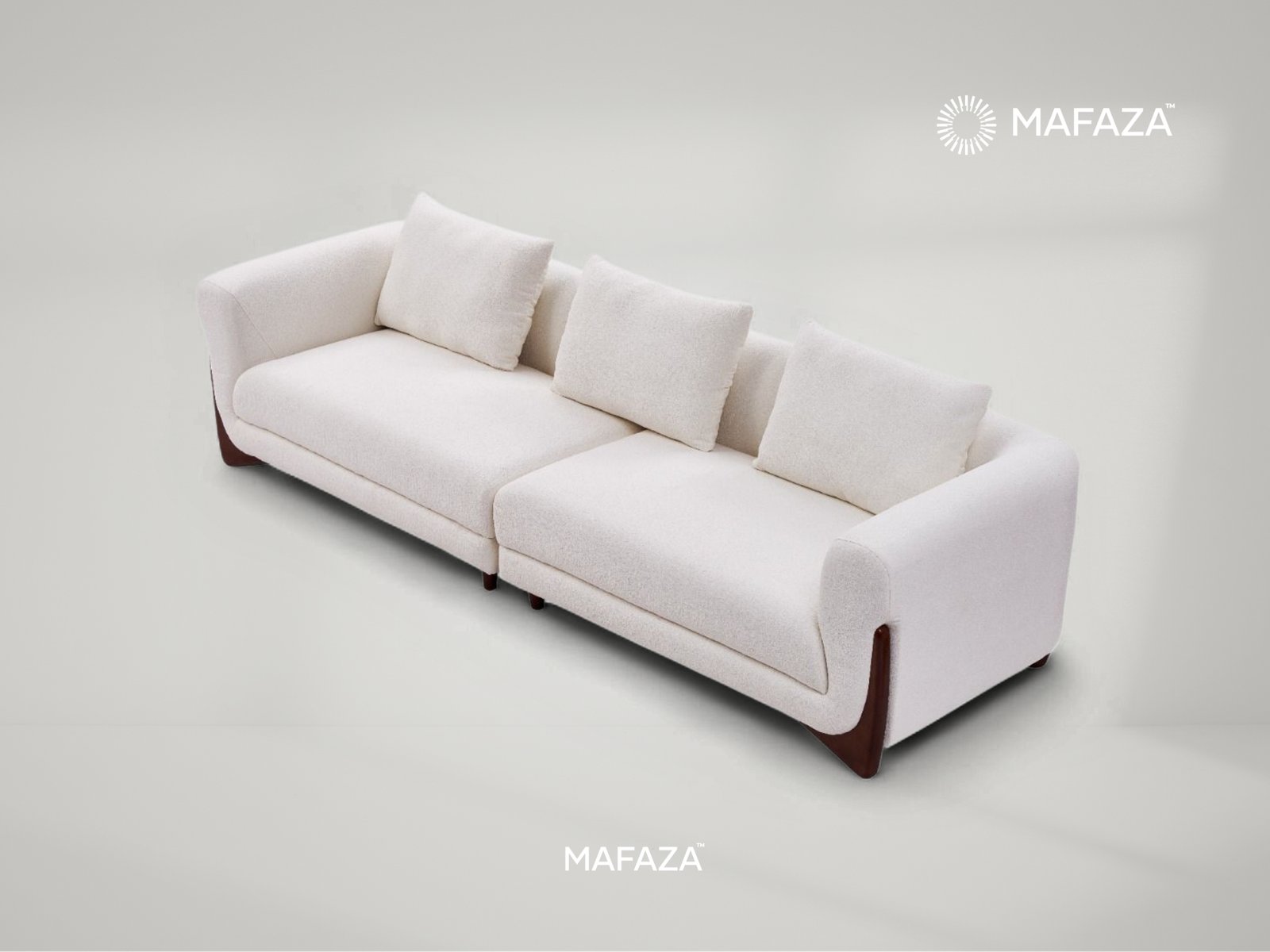 The sculpted form and inviting design of the Vess 3-Seater Sofa redefine modern comfort. Its substantial cushions offer a plush, lounge-worthy feel, and its certified teak wood foundation ensures long-lasting durability. Both modern and traditional homes benefit from the sophisticated elegance that the flowing curves and simple lines provide. Vess, which is intended to be the focal point of your living area, turns leisure into a classic fashion statement.
