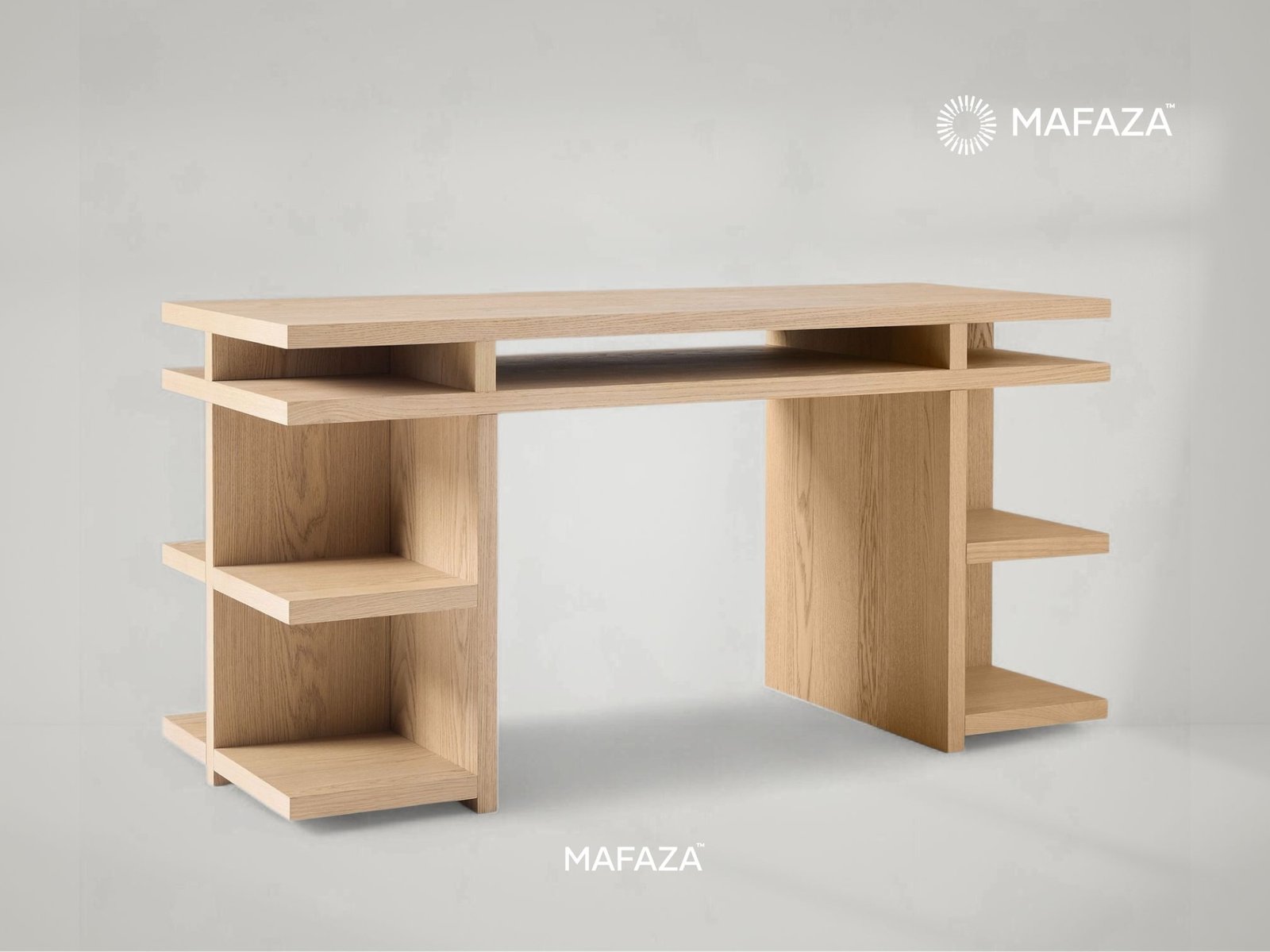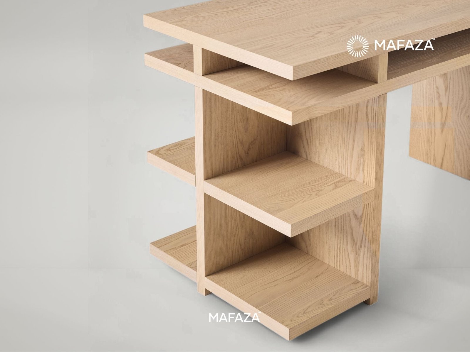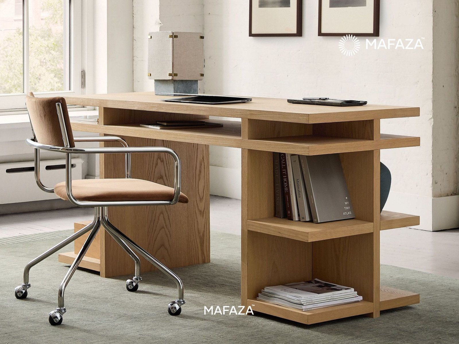 The Wallace Desk is a celebration of detail and organization. Constructed from certified teak wood, it has open storage on both sides, providing practicality without sacrificing style, a classic partner for careful work.